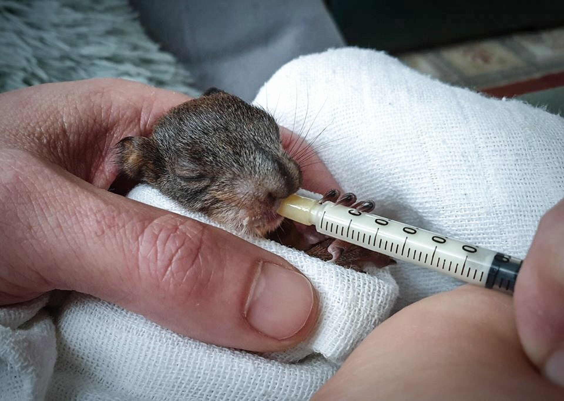 Először próbálkoznak dióval a mentett kismókusok