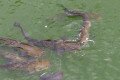 Egy szokásosnak mondható zsákmányolás. Egy átlagosan kifejlett harcsa egyébként úgy egy-másfél méter hosszú és 100 kilogramm lehet, de előfordulnak két méternél nagyobb példányok is