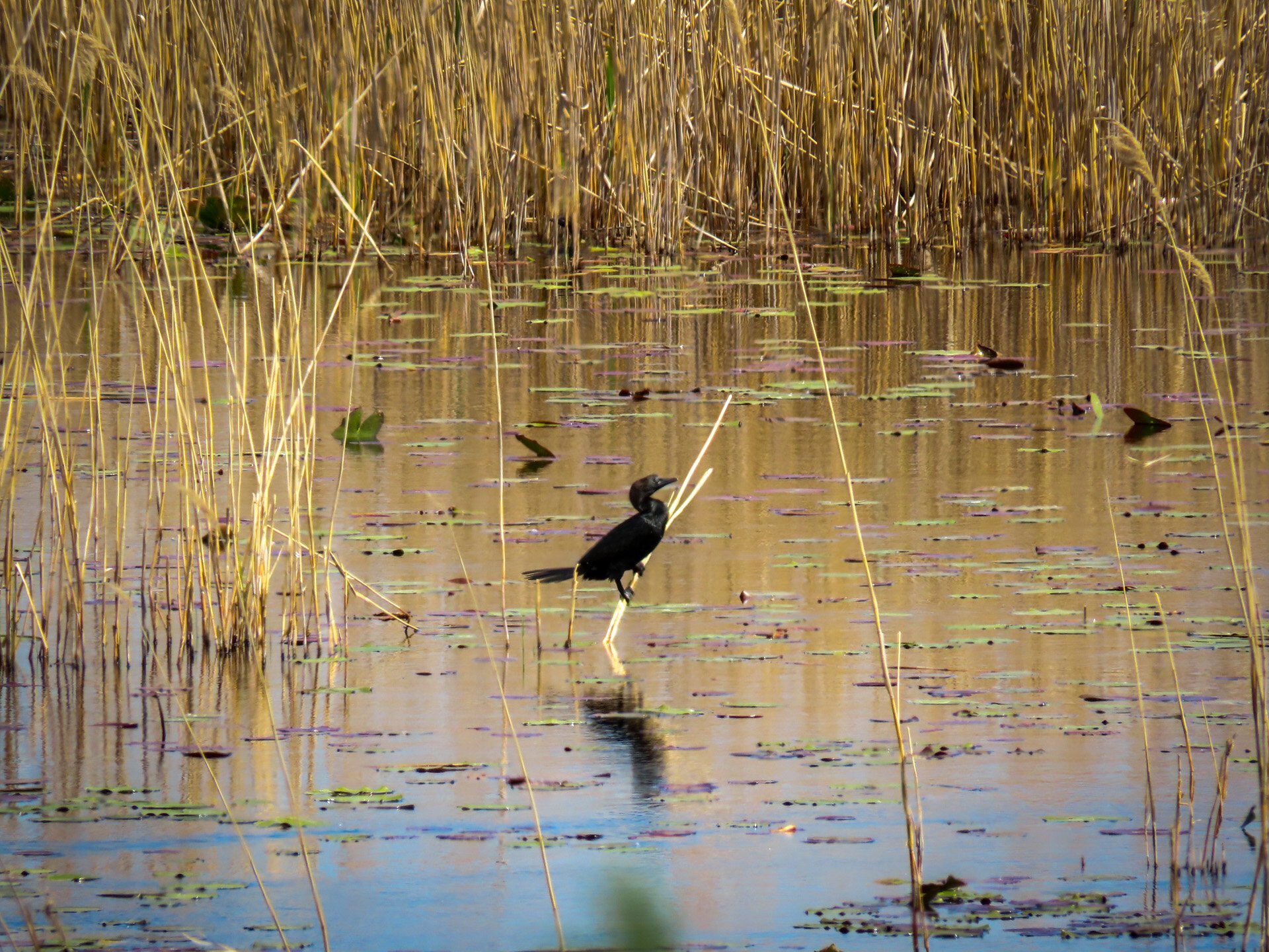 A nádas mélyén, jobbról békák brekegnek, balról egy bölömbika "búg"