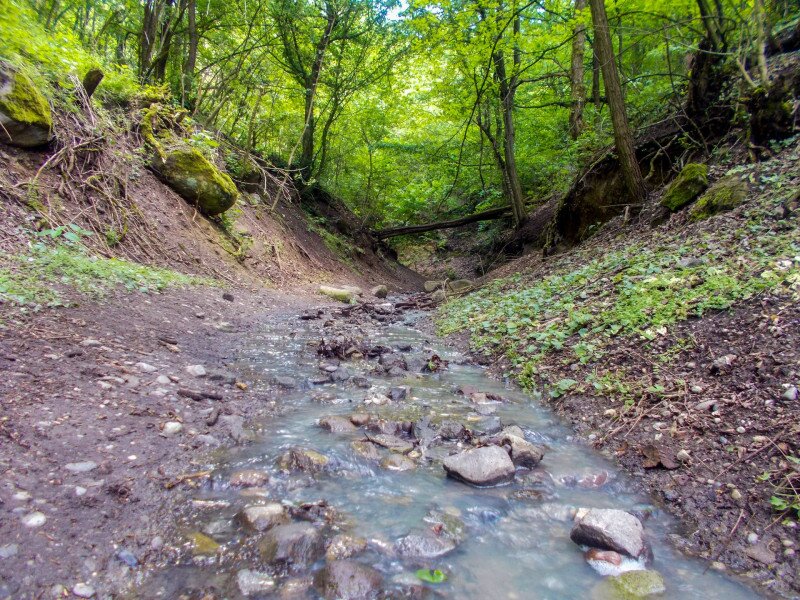 Nógrádszakál északi határától jó 800 méterre, a 2205-ös jelzésű, egyébként meglepően jó minőségű autóút mellett kialakított, nagyjából 10-15 autó befogadására alkalmas kis parkolóból indulva, egy igényesen kialakított turista pihenő mellett elhaladva kezdtem meg a túrát. Pár lépés, és már vizes is lett a bakancsom. Ezzel akár szerencsésnek is mondhatom magam, ugyanis a Páris-patak mára már csak időszakos vízfolyásnak mondható, csupán hóolvadást, vagy nagyobb esőzéseket követően mutatja meg magát a kíváncsi kirándulóknak.