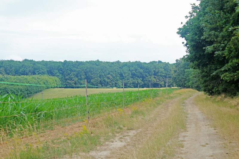 Bélyegzés után a kék bélyegző jelzések mentén sétáljunk végig, így még egy romos téglaházat is észrevehetünk a csalános bozótban, majd a jelzés a tisztás végén belefut a kékbe. Innen szélesebb földút visz tovább az erdő szélén.