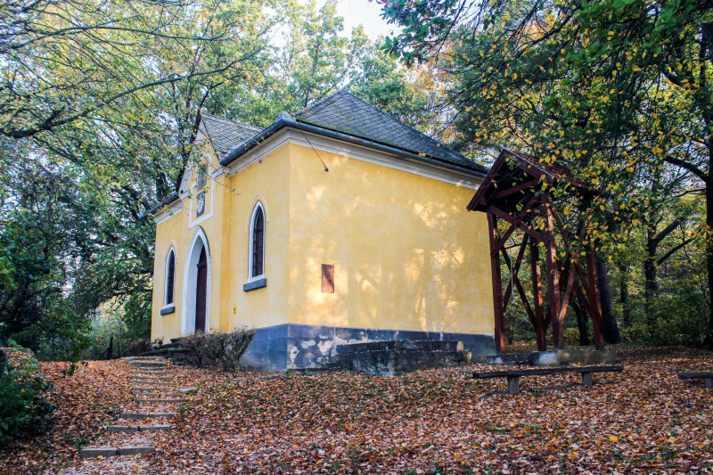 Az udvarban feljebb, a kertkapunál van egy kéktúrás tábla, ezen is van bélyegző. Ezután egy kis kápolna mellett visz tovább az ösvény, egy jókora fa tövében. Ez a Meczner család sírboltja. Ezután hol legelőkön, hol fák között vezető út következett a dombok oldalában, enyhe lejtéssel, lassan feloszló köddel.