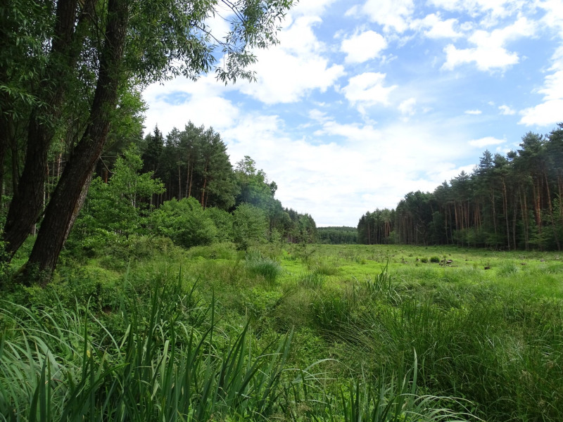 A települést hamar elhagytuk, és a nyugatnak tartó úton indultunk felfelé, majd lefelé, majd... Igen, azt tanítottam földrajzórán, hogy a Dunántúli-dombság jórészt észak-dél irányú mélyszerkezeti törésvonalai meghatározzák a felszín domborzatát, mert a völgyek is észak-déli irányúak. Tehát, ha rájuk merőlegesen közlekedünk, akkor jön a hullámvasút, mint e kiránduláson is. Az első dombtetőkön még régi szőlők és présházak bújtak meg, később erdők, főleg gyertyános tölgyesek váltották fel őket. Az utolsó völgyecskében, ahol a Medesi-patak csordogált, meglepő kép fogadott: egy szép, mocsaras-lápos völgyfenéken kellet átügyeskednünk magunkat. Innen felfelé vitt az ösvény.
