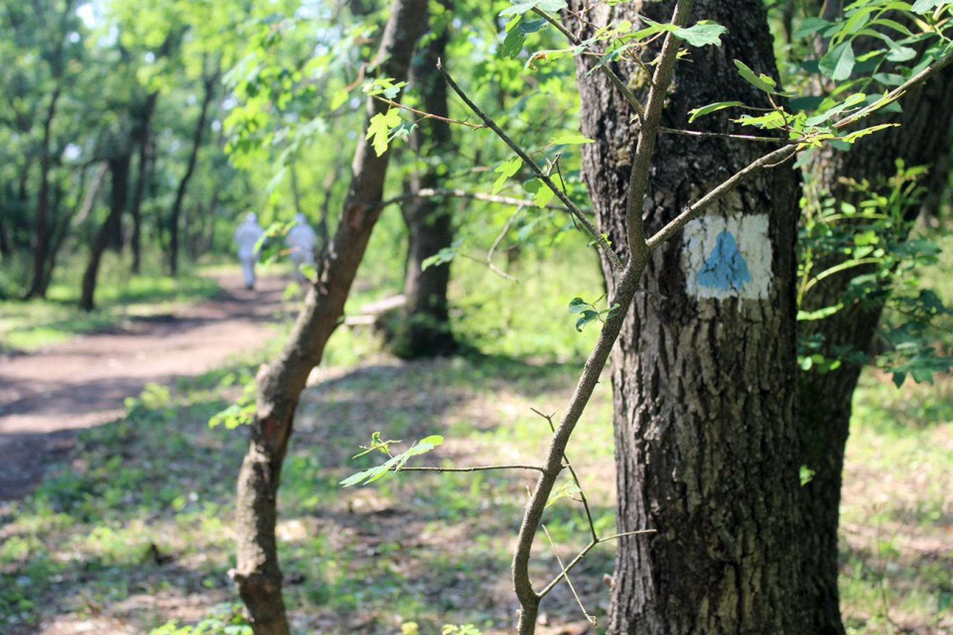 Piliscsaba főtere és két templomtornya is jól látszik, de Klotildliget felé a fák takarják a kilátást