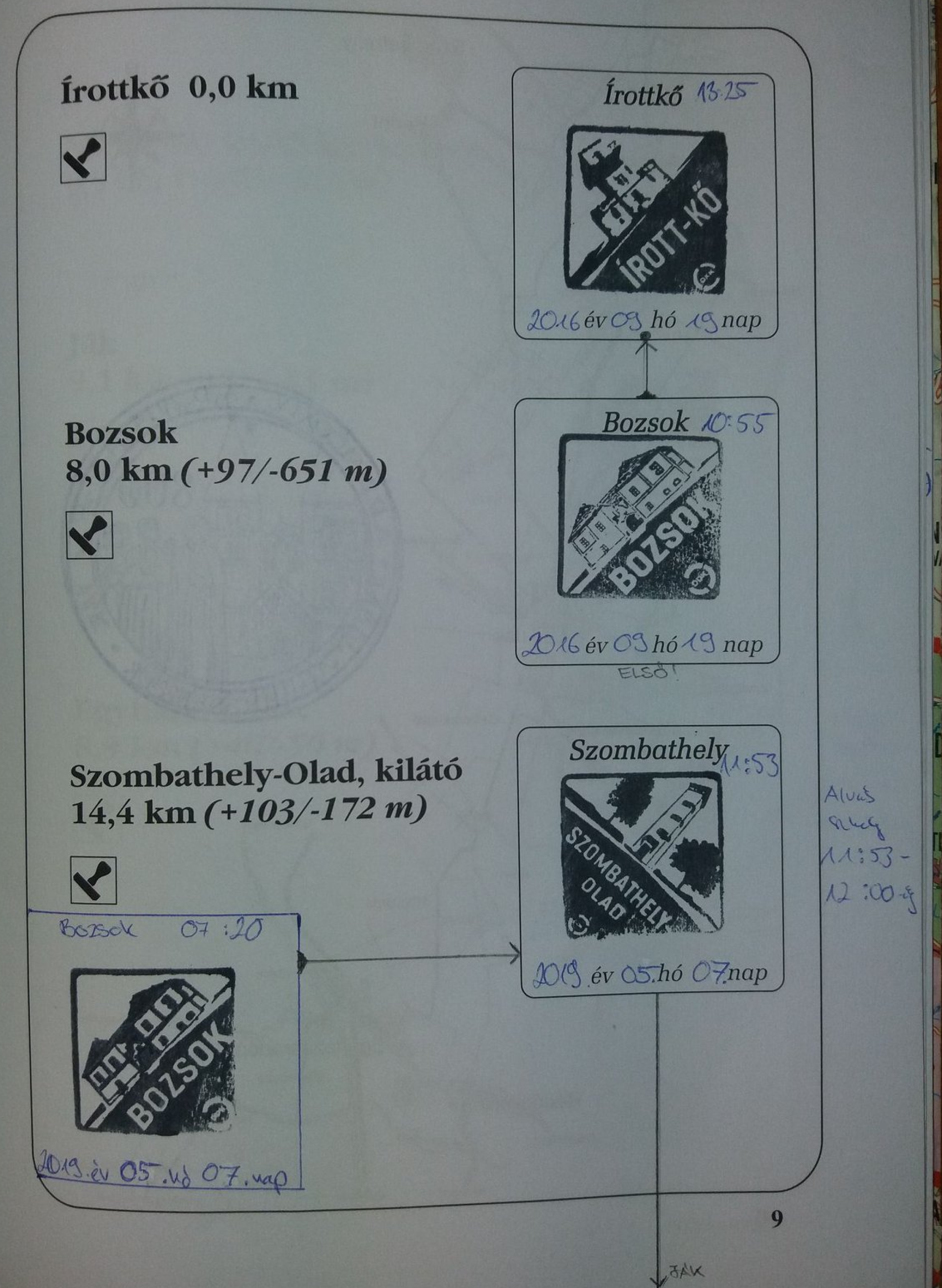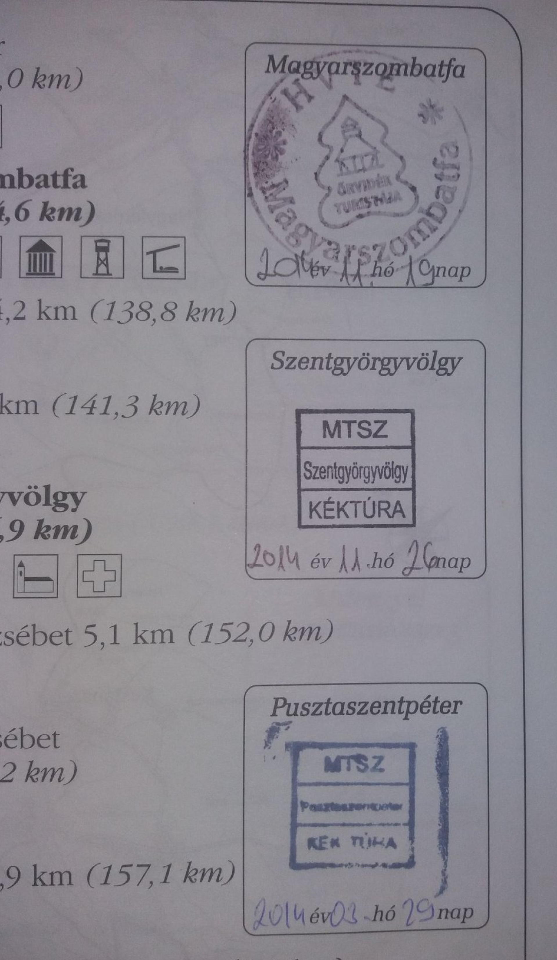 Ez itt három szomszédos pont, három különböző dátummal, ami épp a folyamatos teljesítést nem igazolja. Egy túra elején és végén is szükséges dátummal ellátott bélyegzést tenni a füzetbe, hogy kiderüljön melyik szakaszt mikor jártad le.