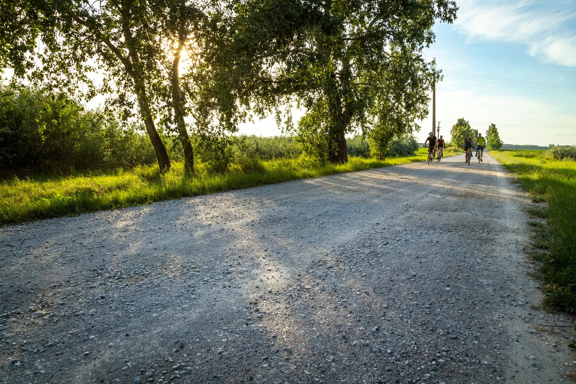 Biciklisek érkeznek Tiszaszőlősre a Tisza-tó felől