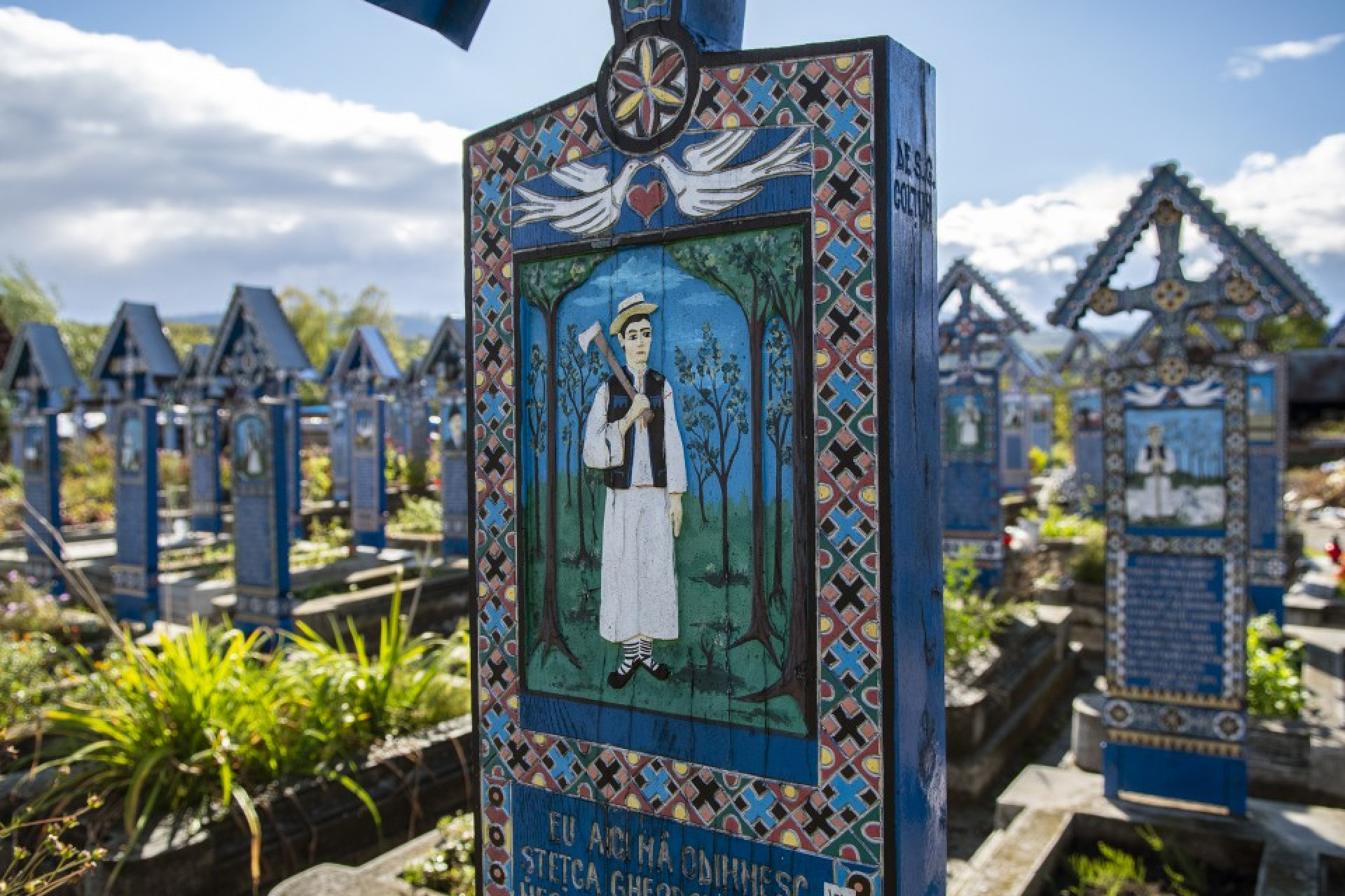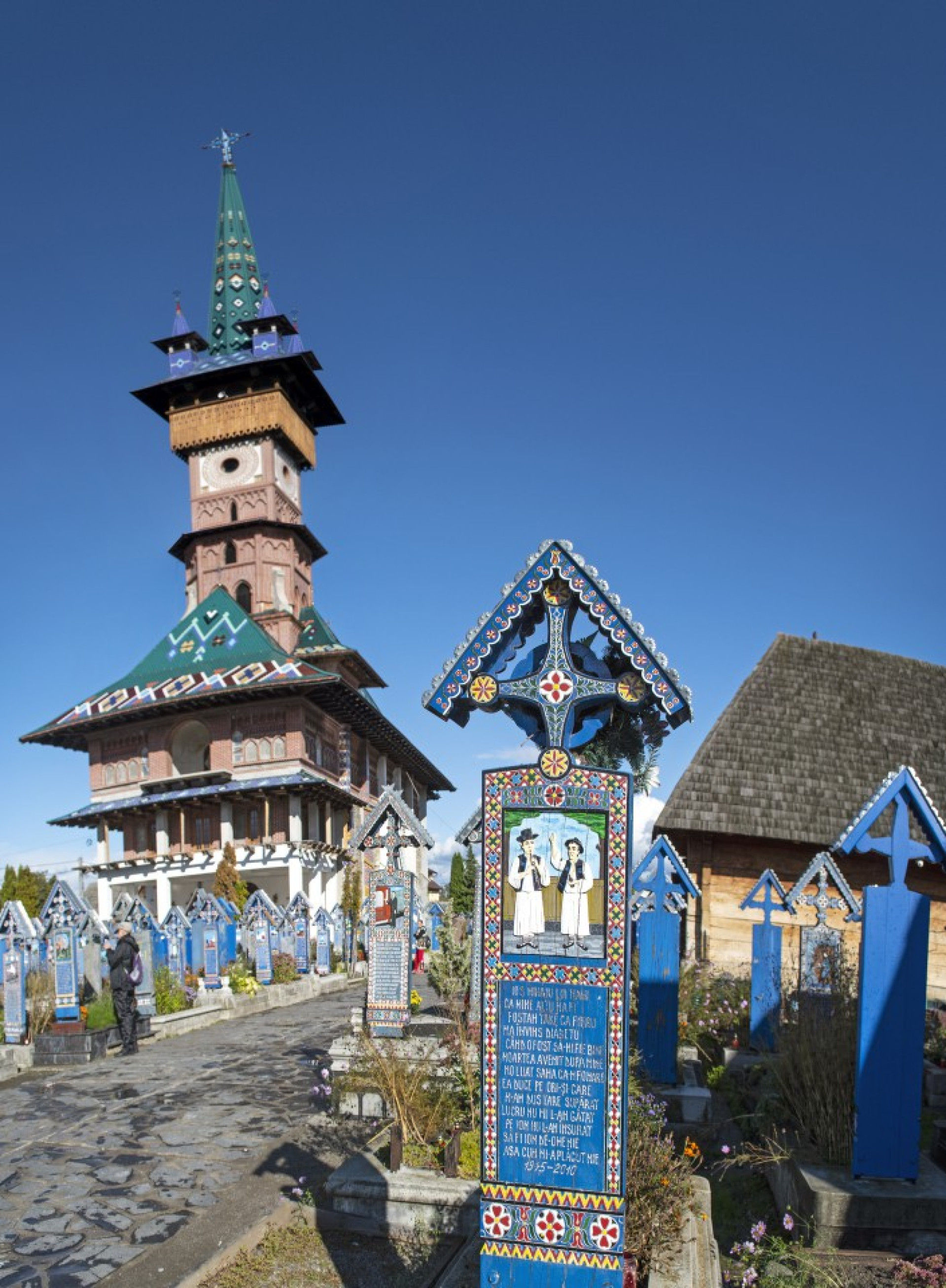 A jellegzetes, szaploncai kék színűre festett fejfák