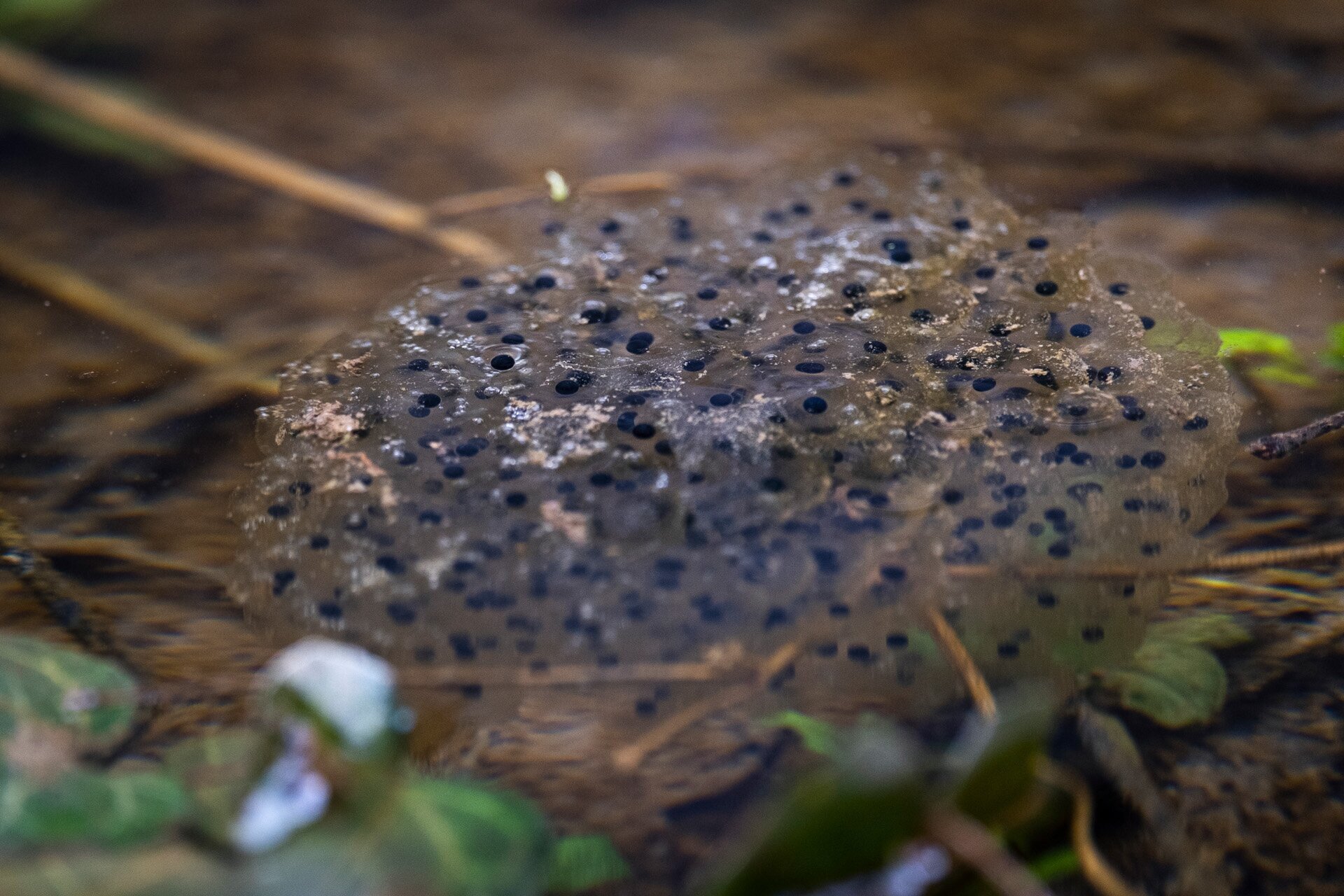 A vízben sok békapetecsomót is láttunk, amelyekből, ha minden jól megy, sok kis erdei béka születik majd.