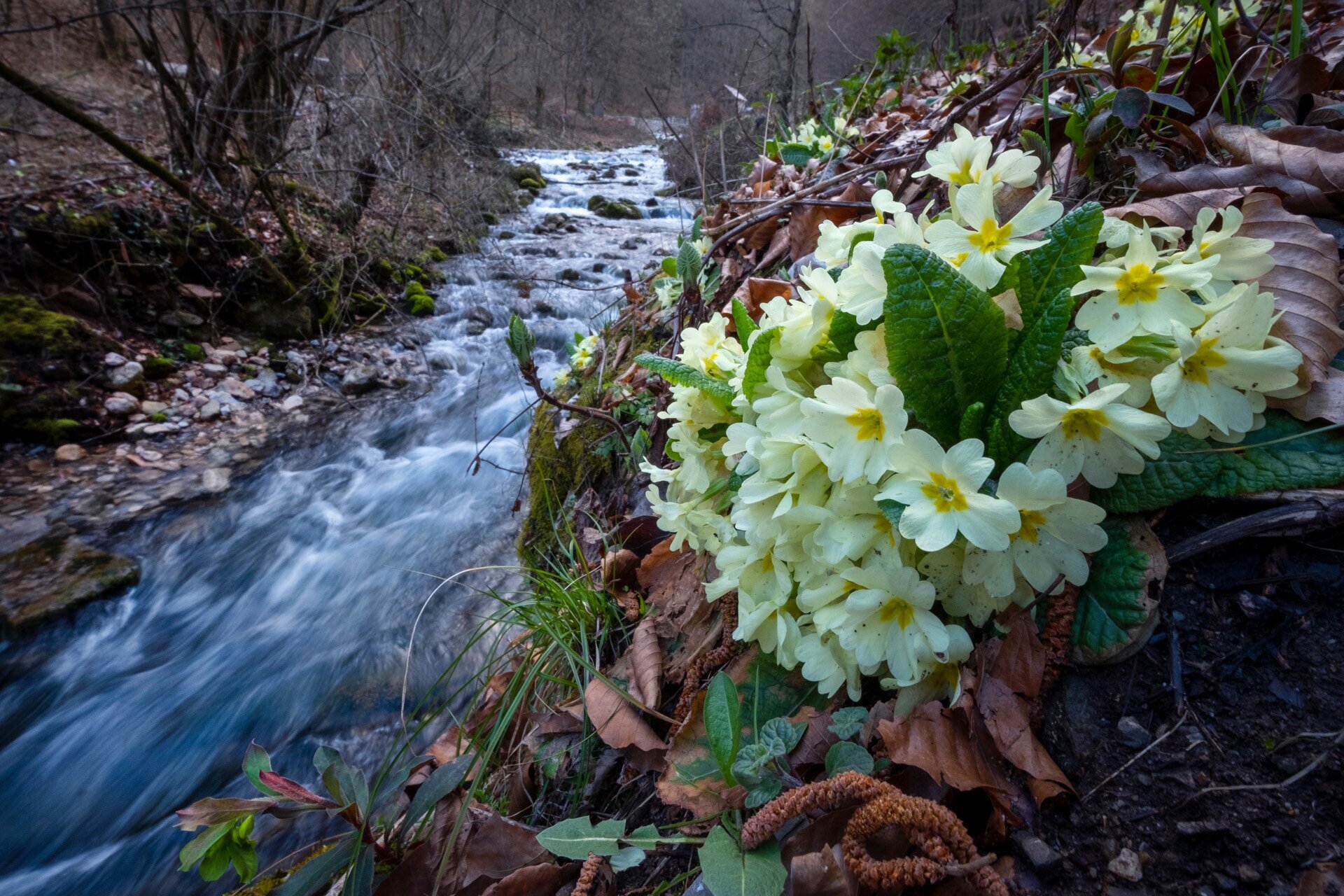 A sebesen hömpölygő Sonkolyos-patak partját szártalan kankalinok sokasága díszíti, amelyeket magas nektártartalmuk miatt szívesen látogatják a méhek és a lepkék is