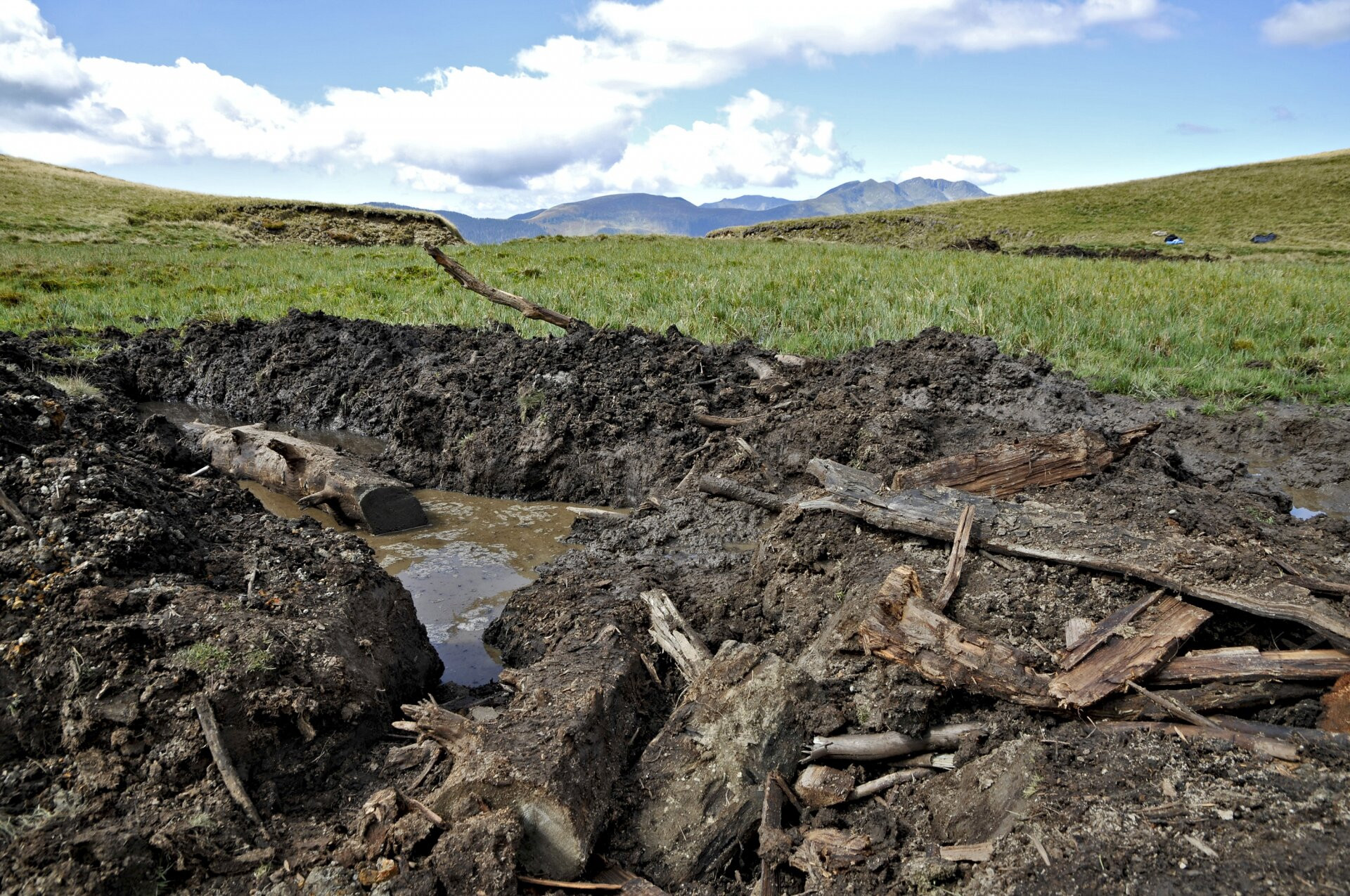 A szubfosszilis fák különböző helyeken csapdázódnak, itt például egy hegyi tőzeglápban