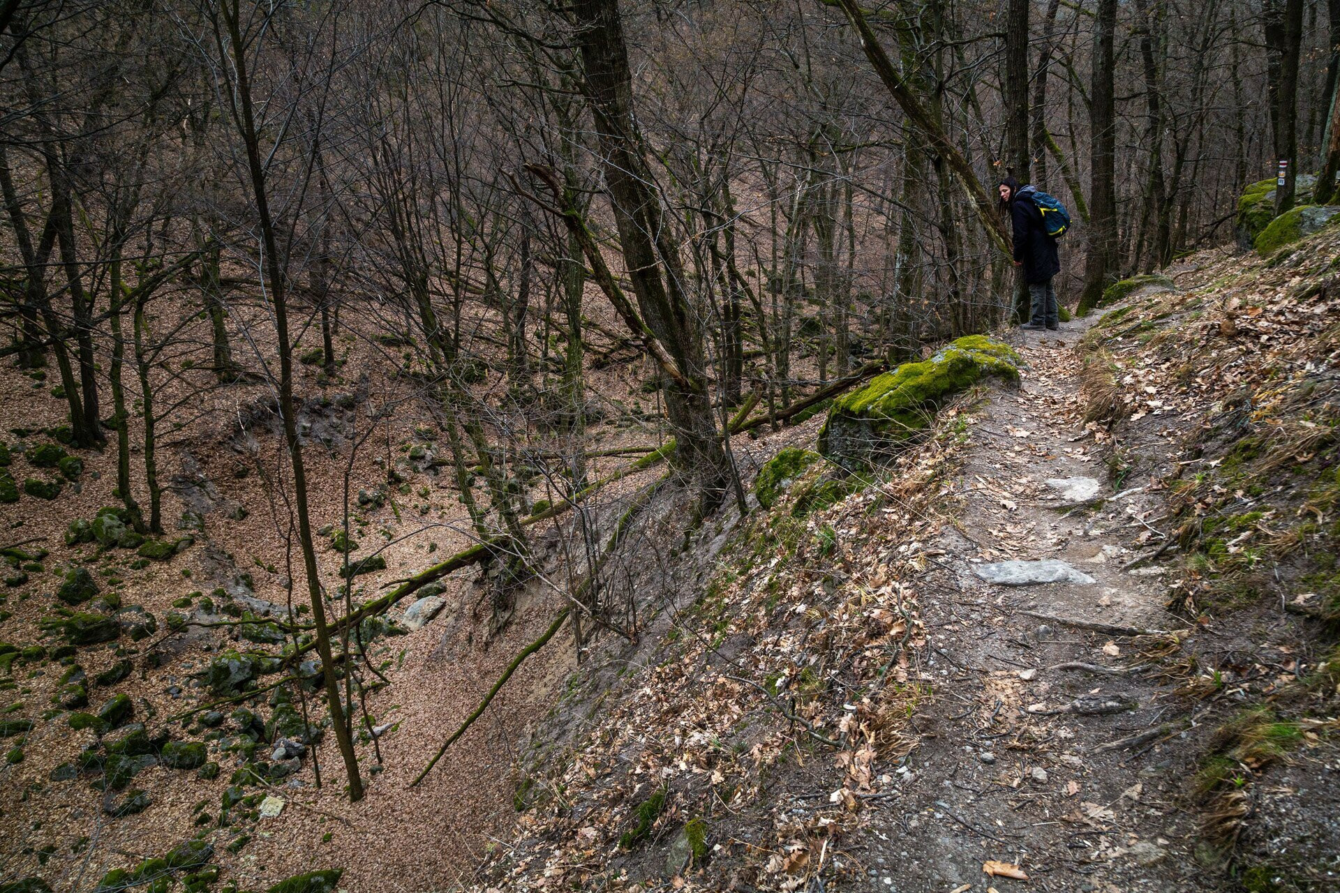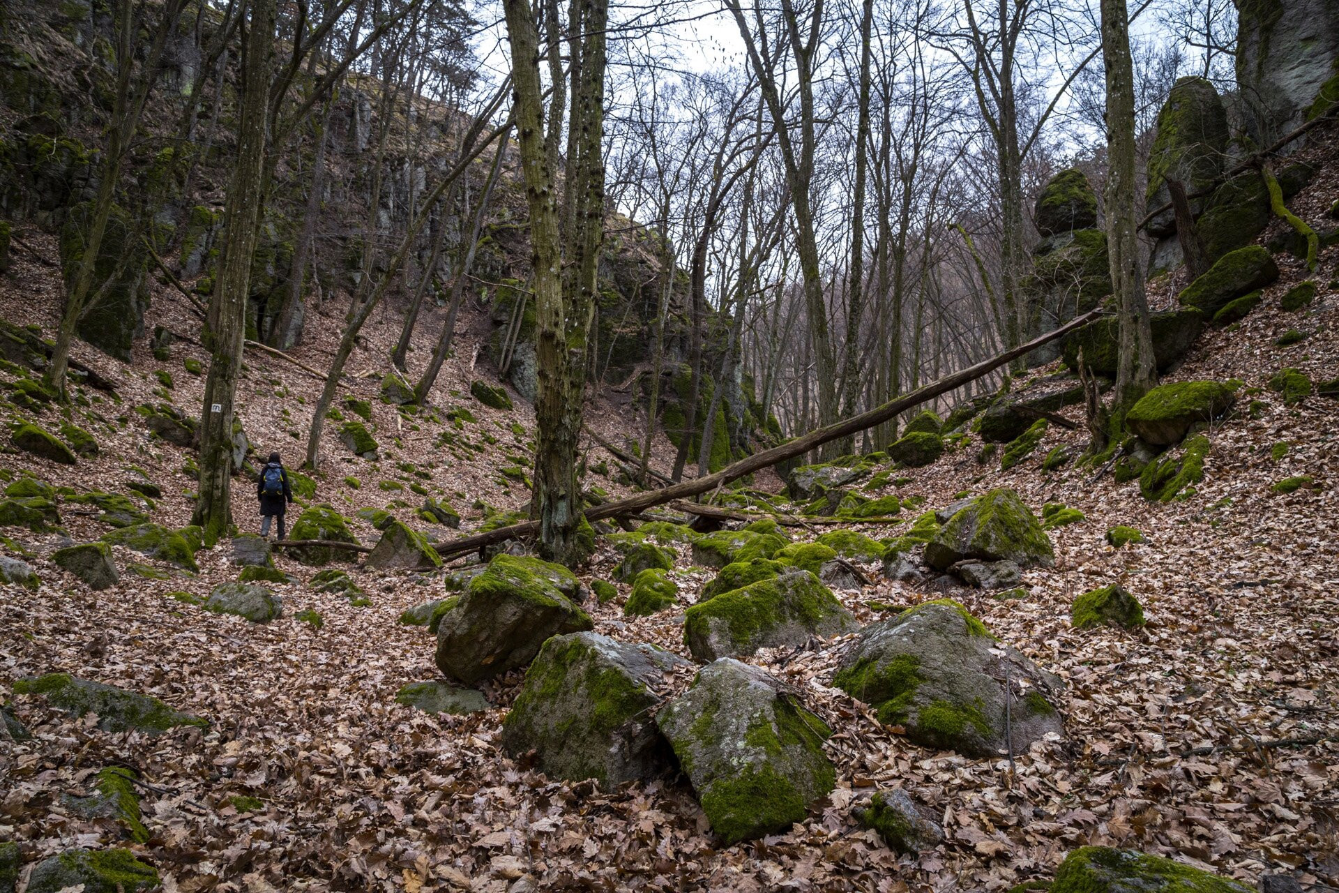A lenyűgöző táj mellett arra is oda kell figyelni, hová lépünk, mert a mély avarral borított "köves úton" a bokánk bánhatja