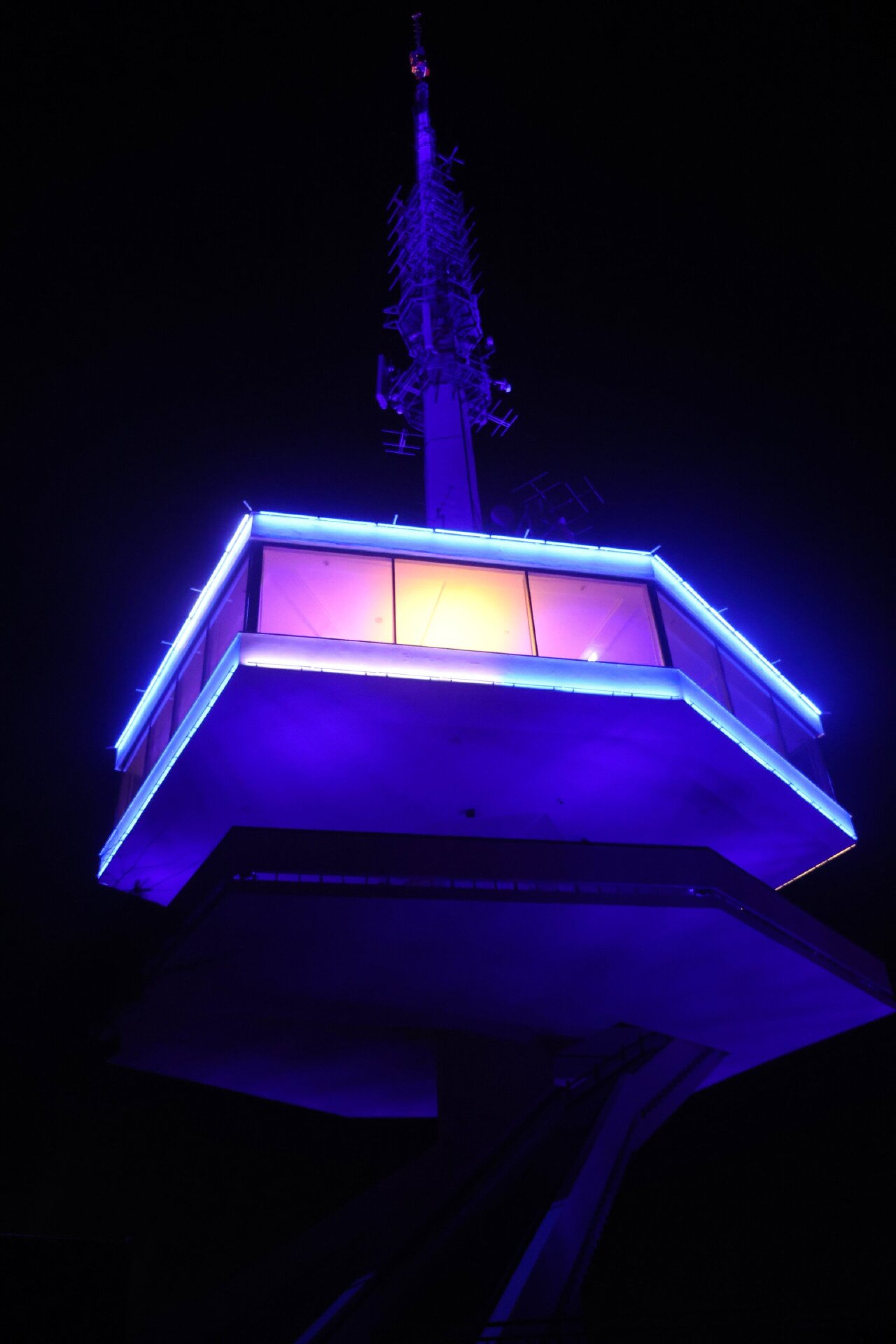 A tévétoronyként és kilátóként egyaránt funkcionáló, első rápillantásra igen fura formájú épület 1963-ban készült el Hófer Miklós és Vörös György tervei alapján
