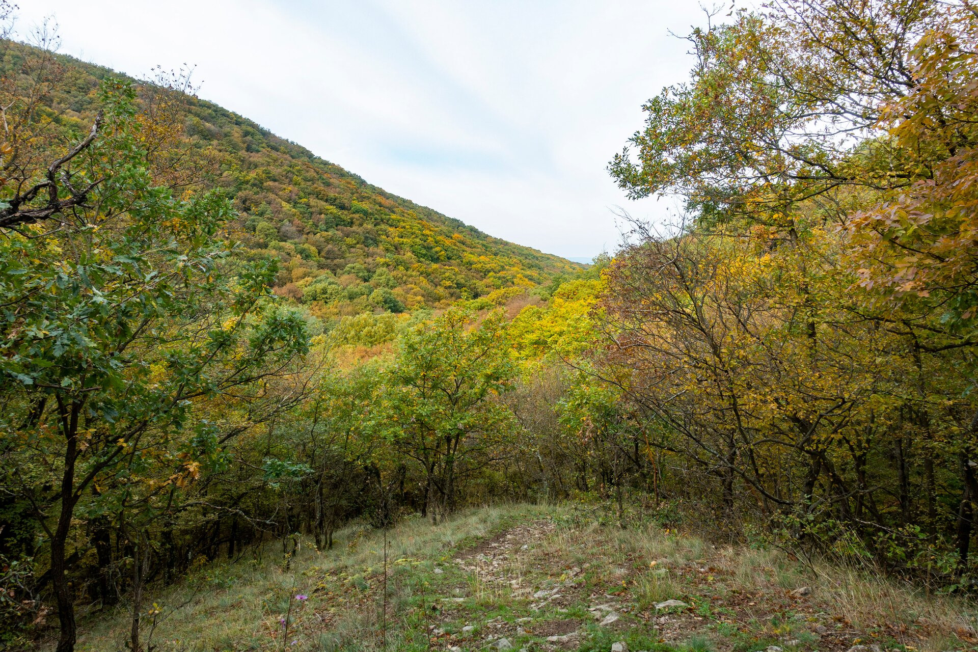A régi vasút nyomvonalán haladunk a Kereszt-völgy katlanában