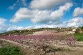 Virágzó barackültetvény Szicíliában