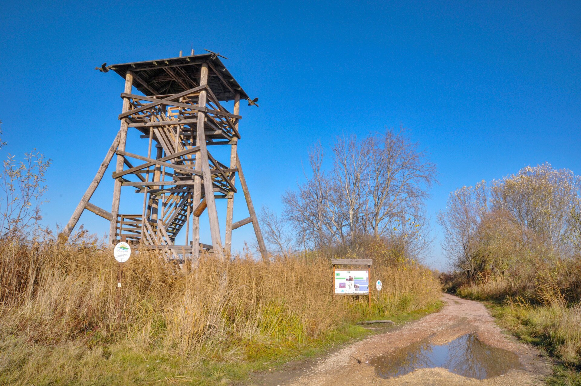 A tanösvény kezdő- és végpontja a kilátó, amelynek tetejéről rögtön áttekintést is kapunk sétánk helyszínéről