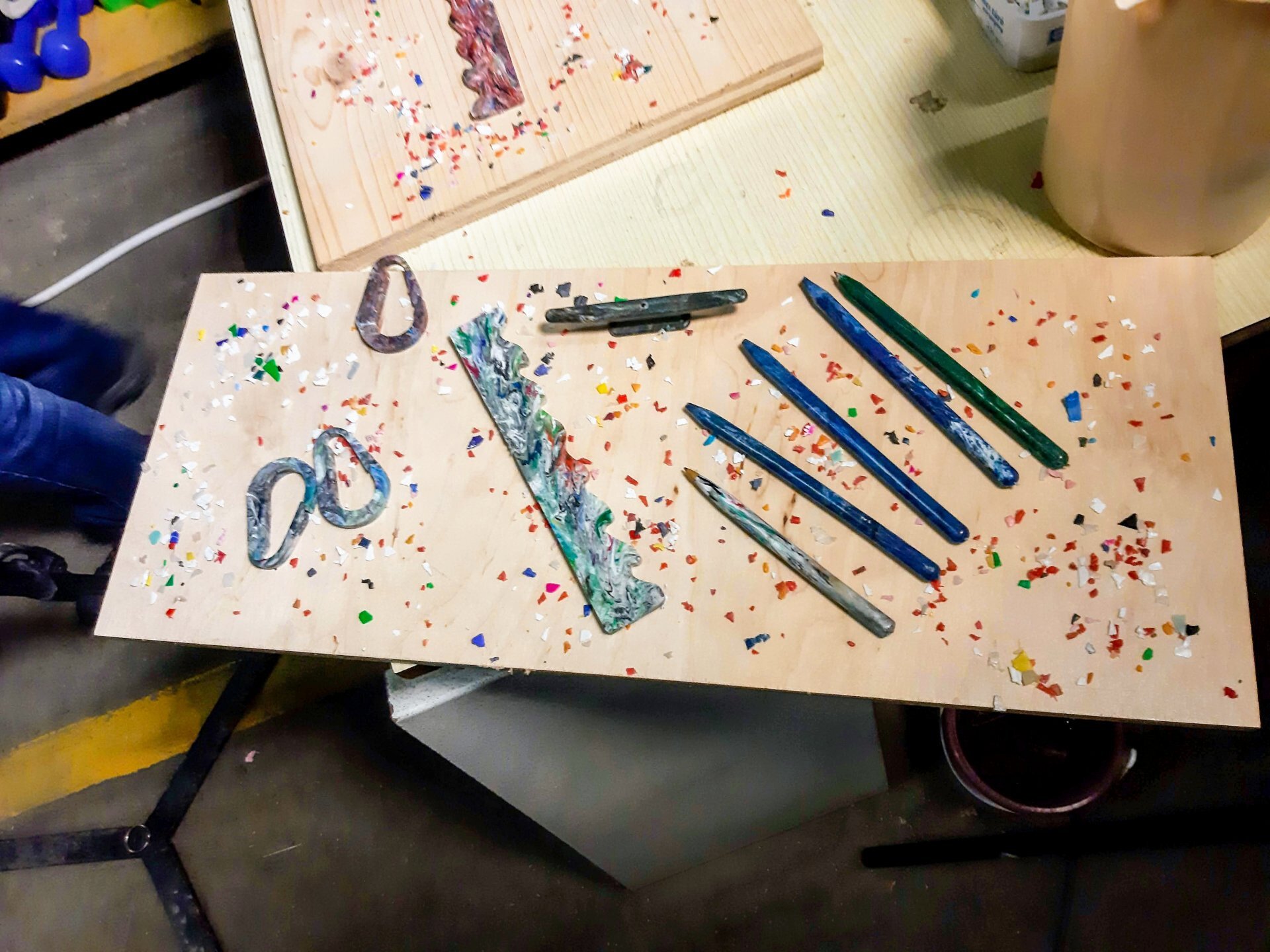 A Mümü-ben a folyami műanyaghulladék tollakká, vonalzókká, karabinerekké és egyéb használati tárgyakká alakul át