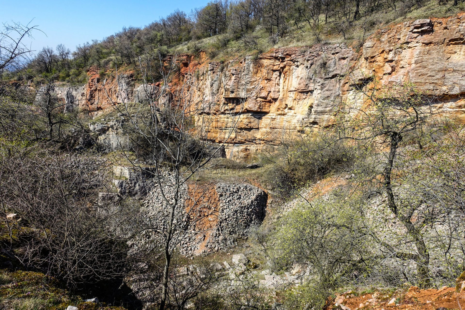 A kőfejtő sziklafala több száz méter hosszan húzódik a hegyoldalban