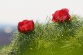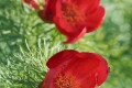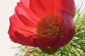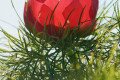 Virágjának 7-8 (ritkán 10) szirma van, amely színe sötétvörös vagy még pontosabban karmazsinvörös. Ritkán előfordul rózsaszín színváltozatban is.