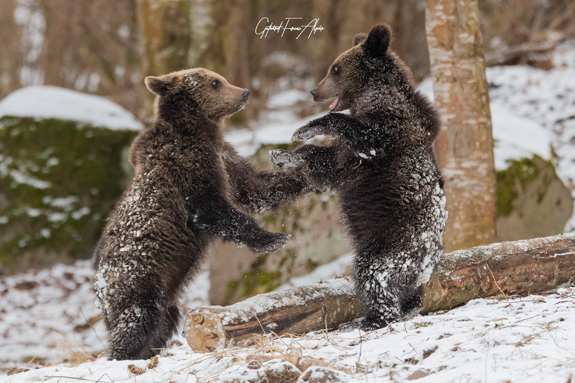 Az egymással játszó medvebocsok nem is sejtik, hogy közönségük is van