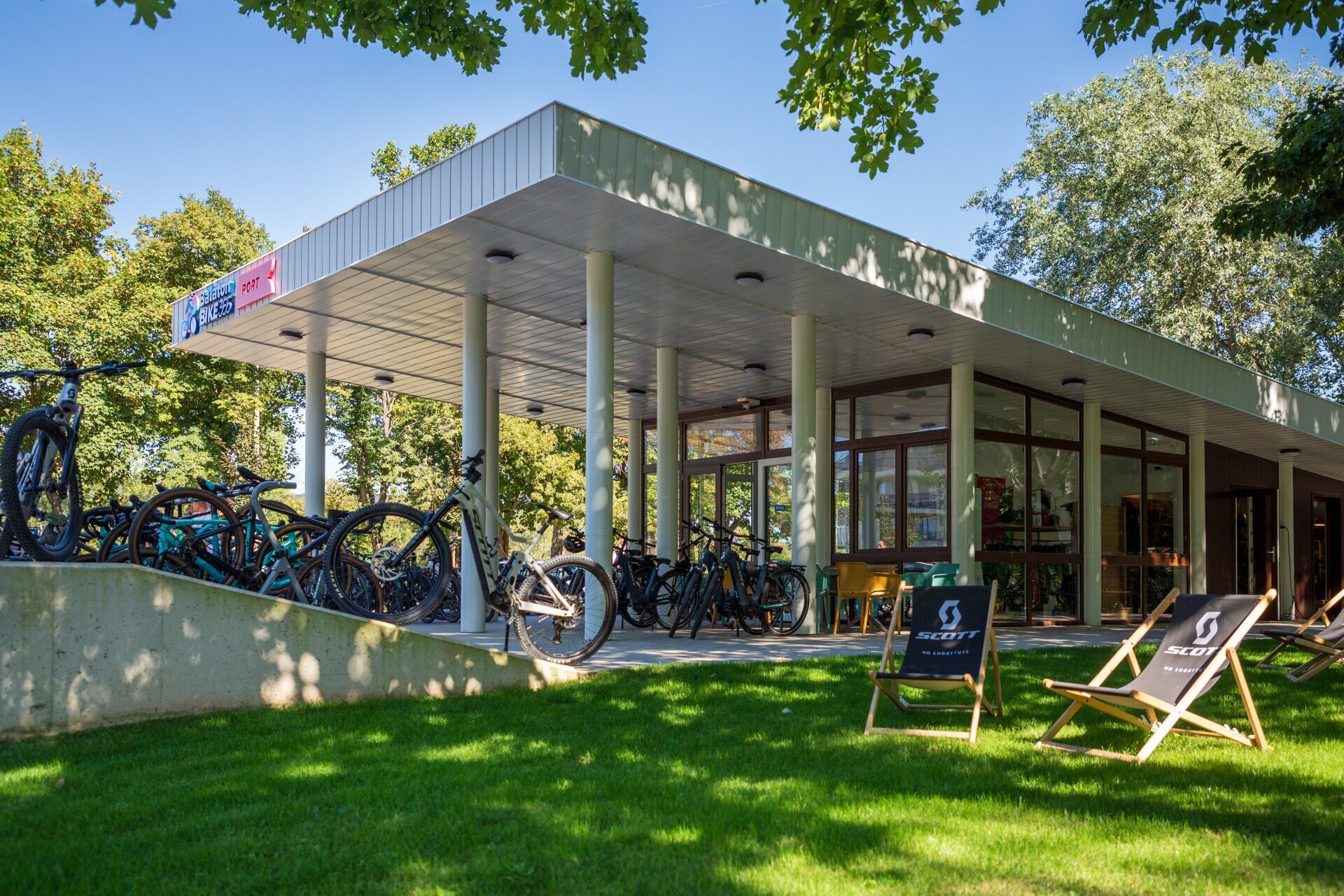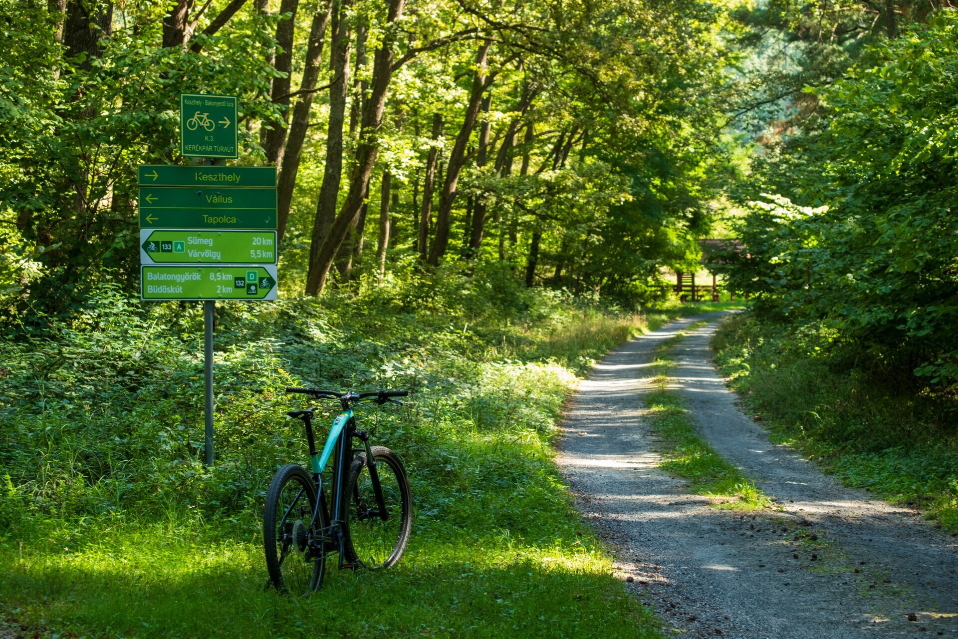 Táblákkal jelölt kerékpáros útvonalak az erdőben