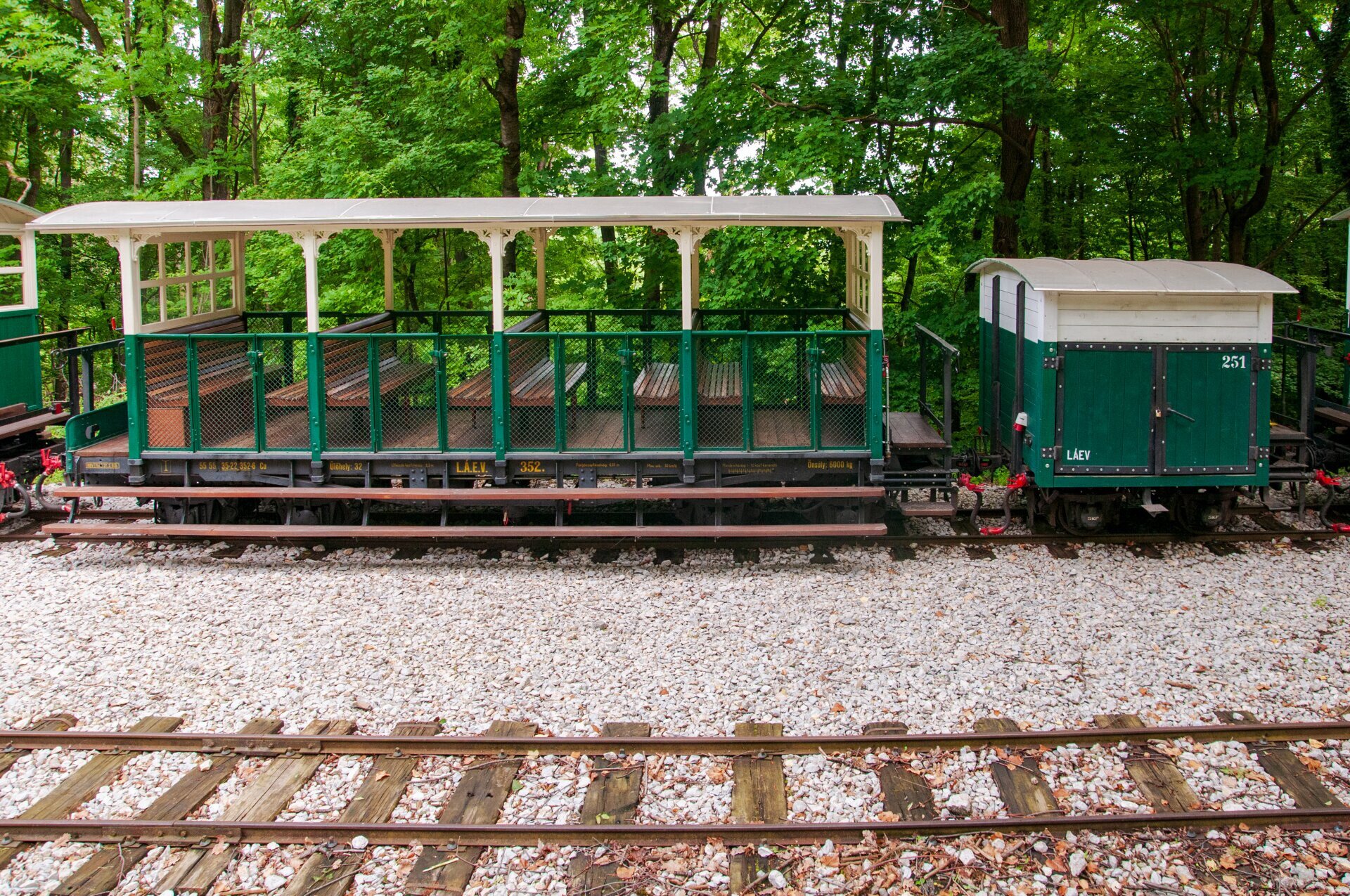 1928-as gyártású Diamond nyári nyitott személykocsi és a kis poggyászkocsi