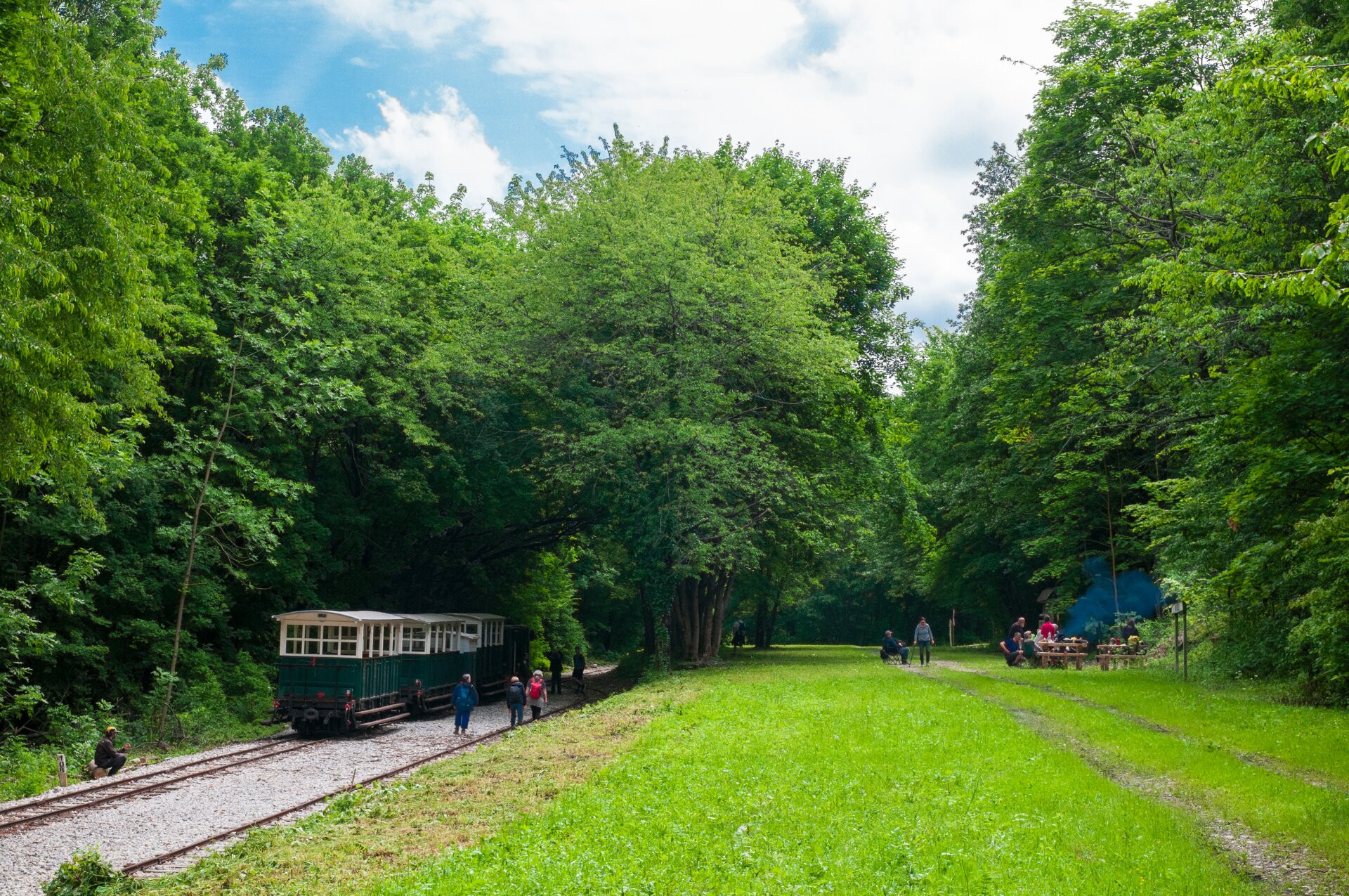 Andókút hangulatos tisztásán akkor vannak ilyen sokan, ha vonat érkezik. Egyébként nagy itt a nyugalom.