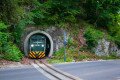 1928-ban gyártott Ganz motorkocsi a Lillafüredi Állami Erdei Vasút alagútjánál 1931-ben.