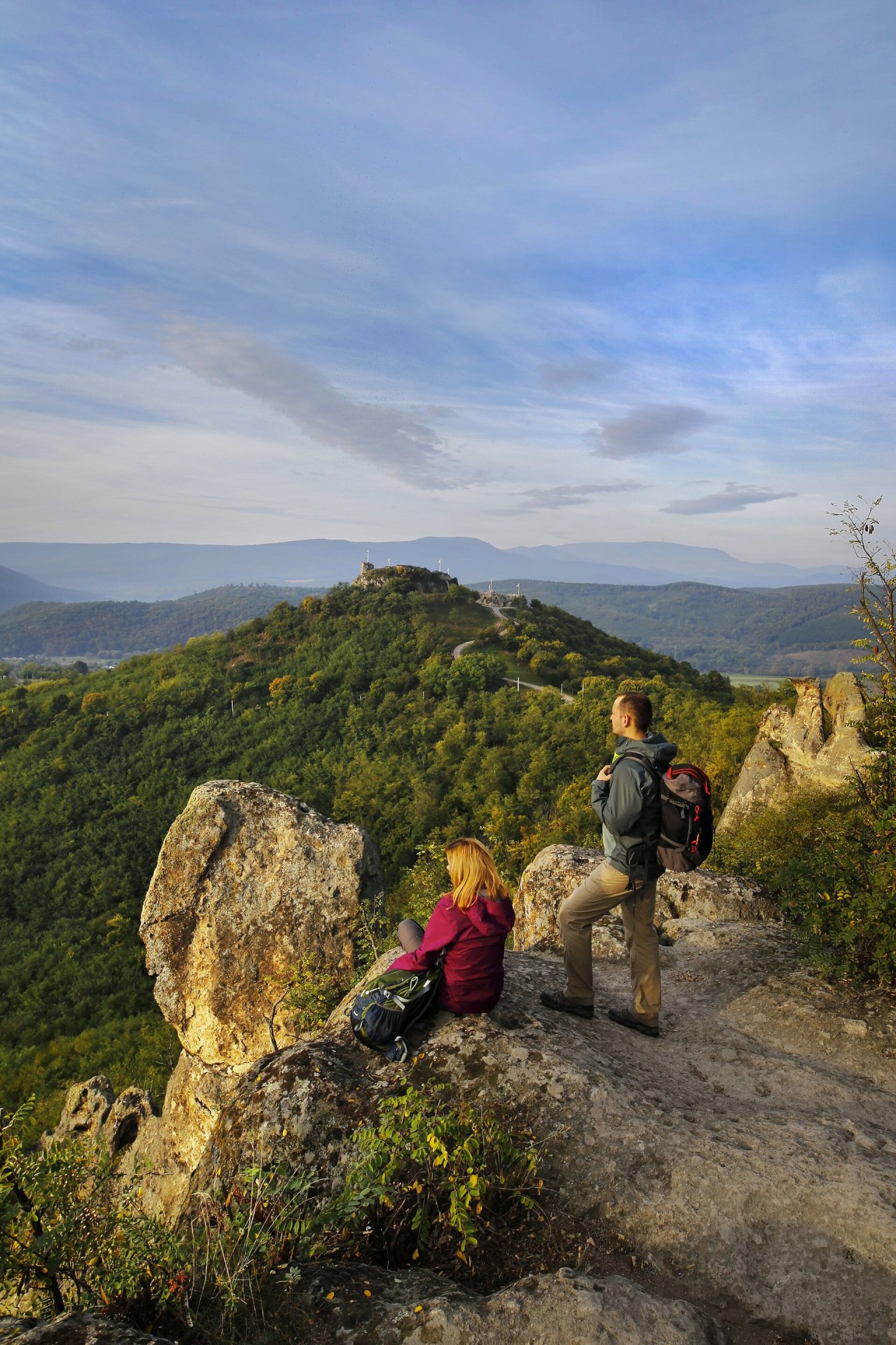 Kilátás a Törökasztalról a siroki várra és a Mátra vonulataira