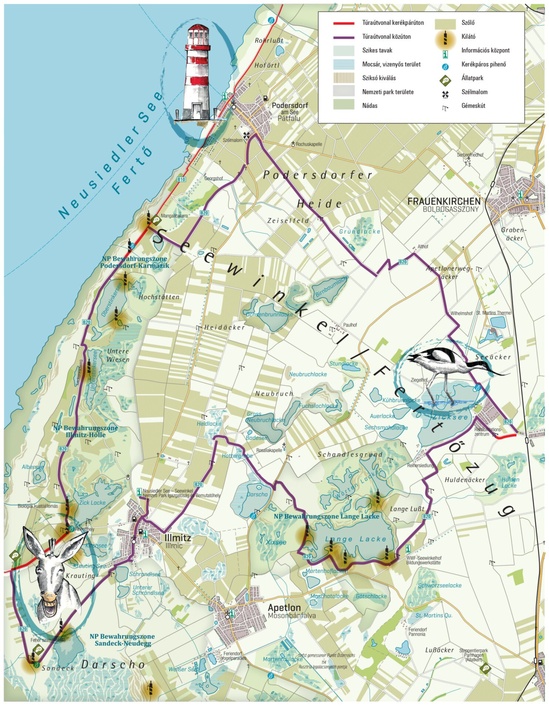 Az illmitzi látógatóközpont parkolójából kezdtük a bő 50 kilométeres körtúránkat a B20-as jelzést követve