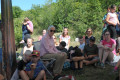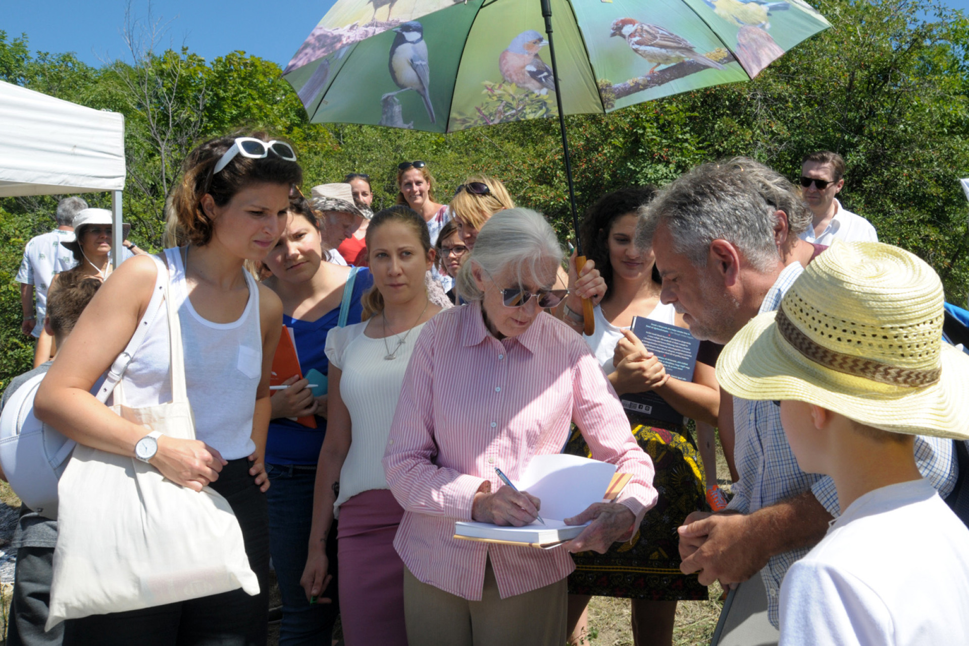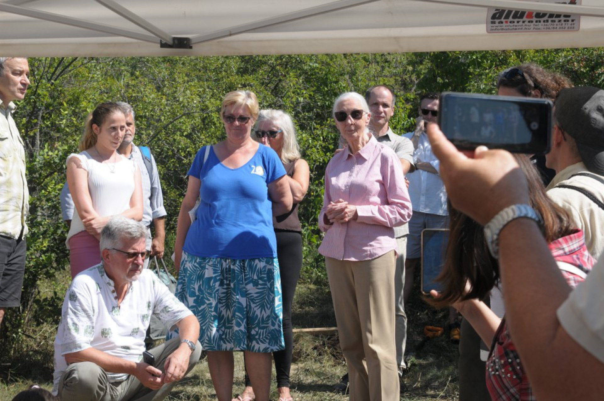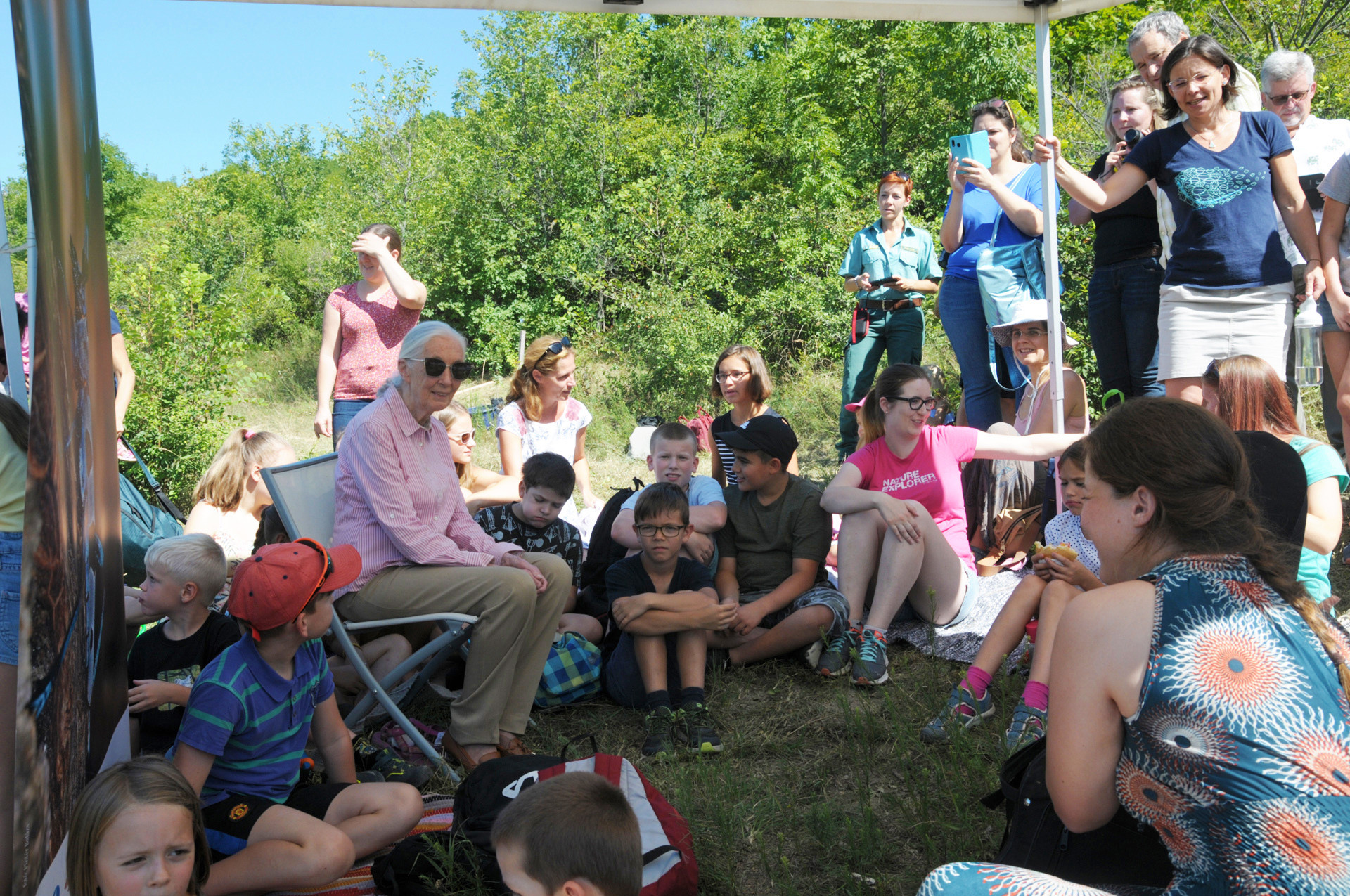 A világhírű főemlőskutató és természetvédő a gyerekek körében. Az iskolások a hazai Roots and Shoots csoportok tagjai, illetve a Duna-Ipoly Nemzeti Park Igazgatóság nyári táborának résztvevői