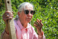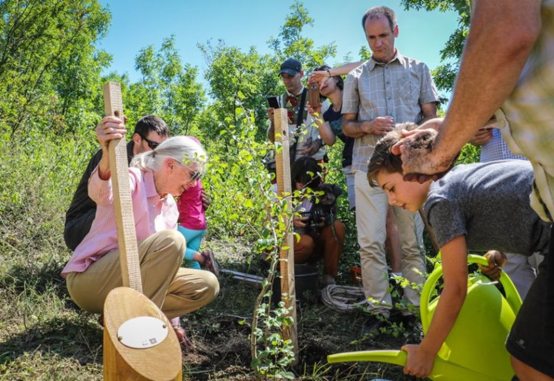 Jane Goodall világszerte sok-sok faültetésen vett már részt, melyeknek állandó eleme, hogy a levelekre adott puszival kíván hosszú életet az elültetett kis fáknak