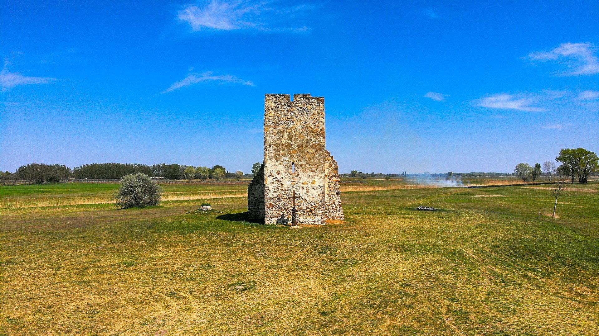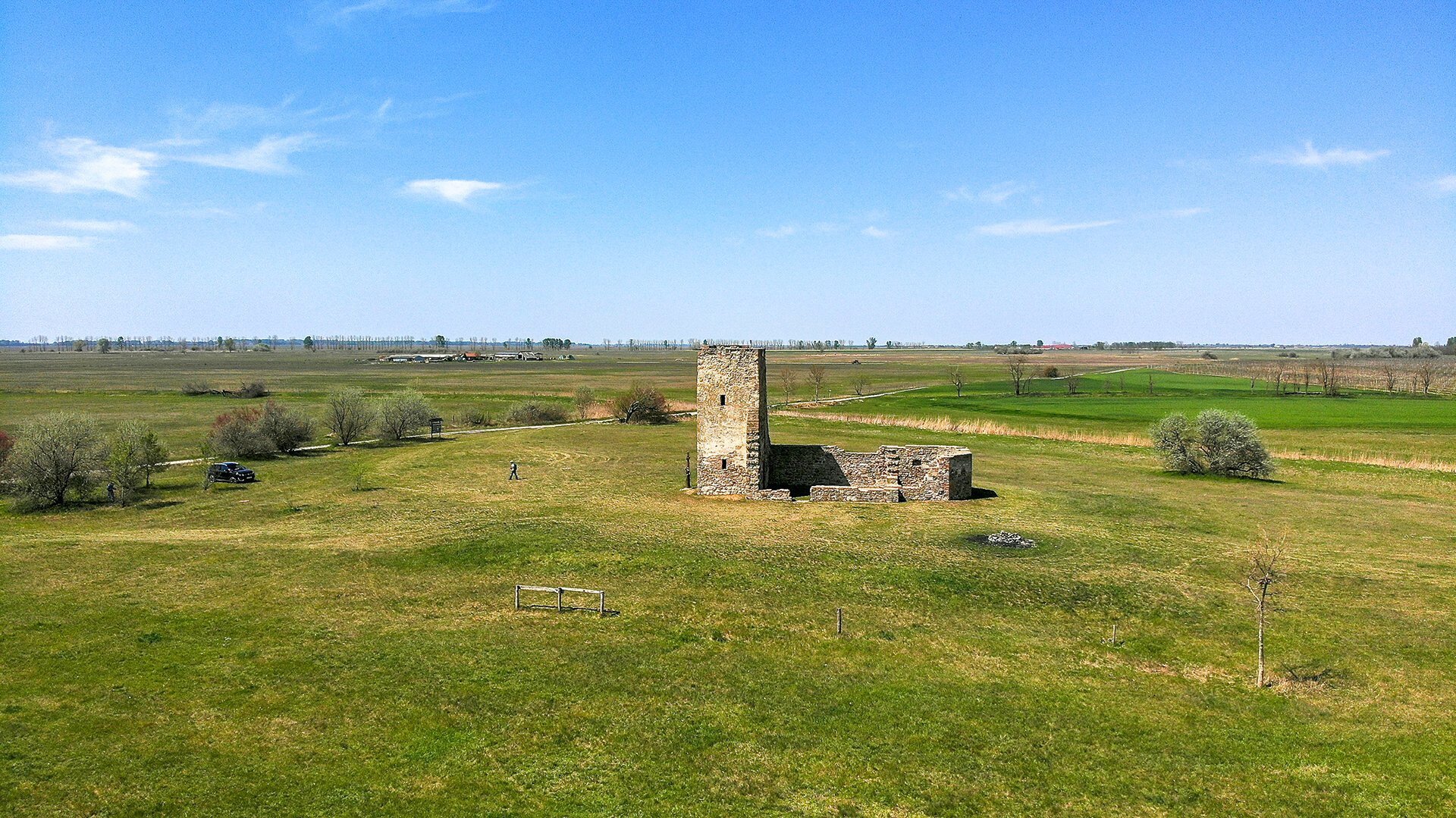 A műemléki védettségű templomrom nyugati tornya mintegy 10 méter magas. Az eredeti négy emeletéből mára kettő maradt meg