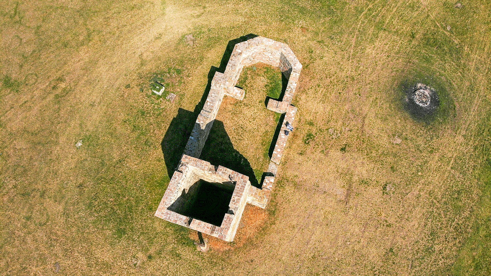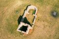 A szentély falában a téglák mellett lyukcsos szerkezetű réti mészkővet, népies nevén darázskövet is találunk