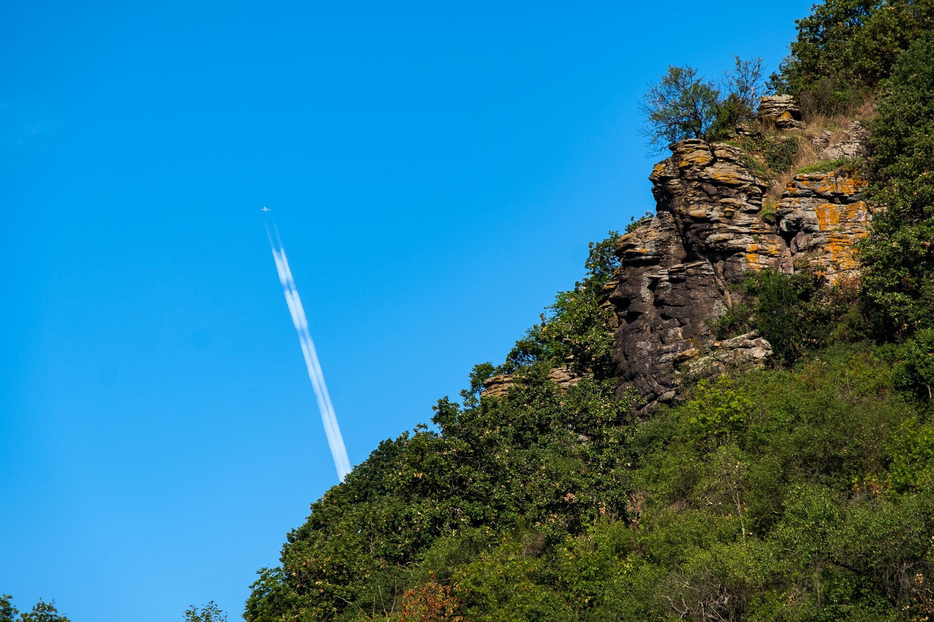 Egy kis kitérőt kell tennünk a kaszálóréten ahhoz, hogy a bazaltorgonák tetejéről kinézhessünk délre, de megéri: a Balaton-felvidék tanúhegyeit is látni lehet.