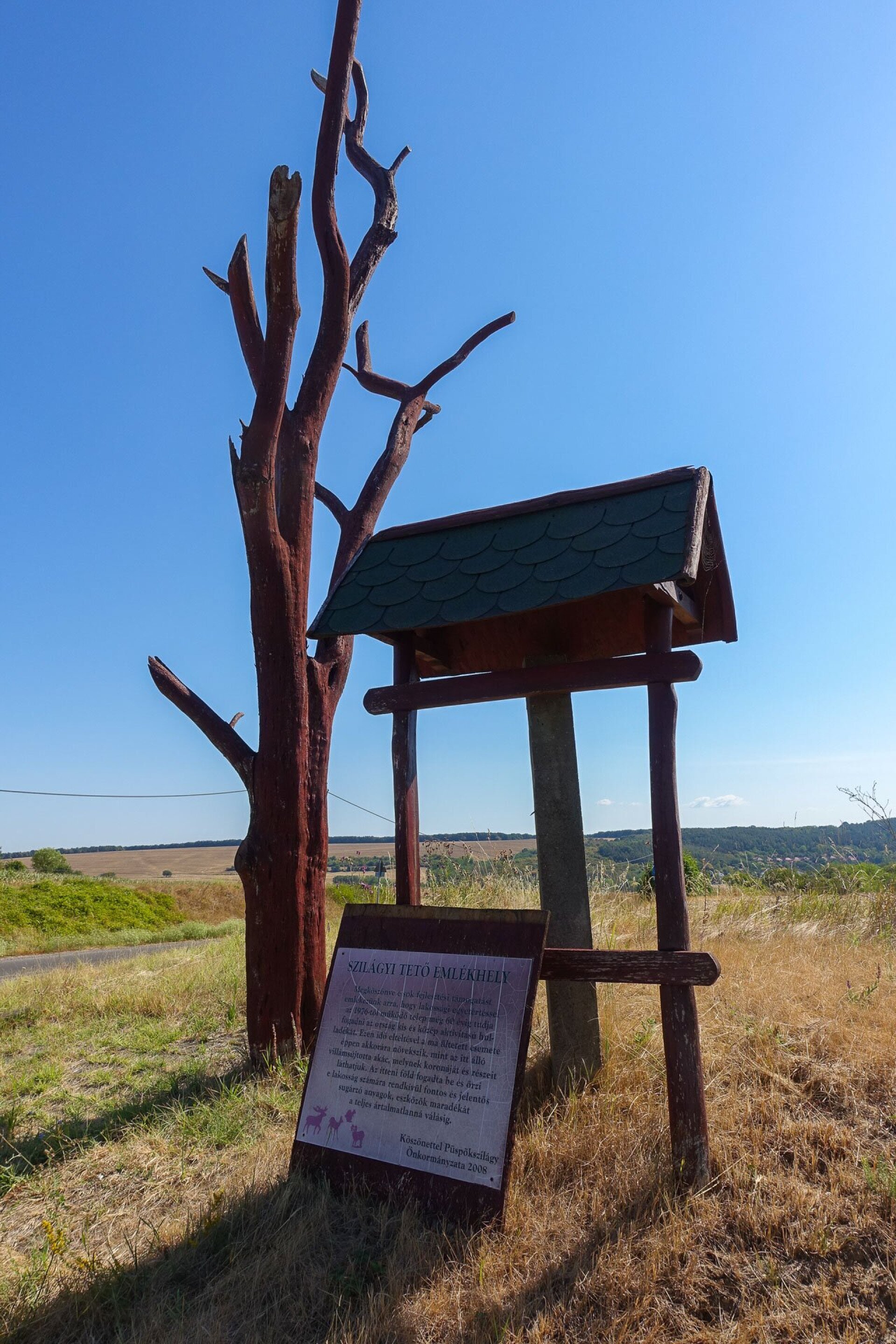 A falu feletti tetőn emléktábla hirdeti, hogy 1976 óta működik a község határában a feldolgozóüzem.