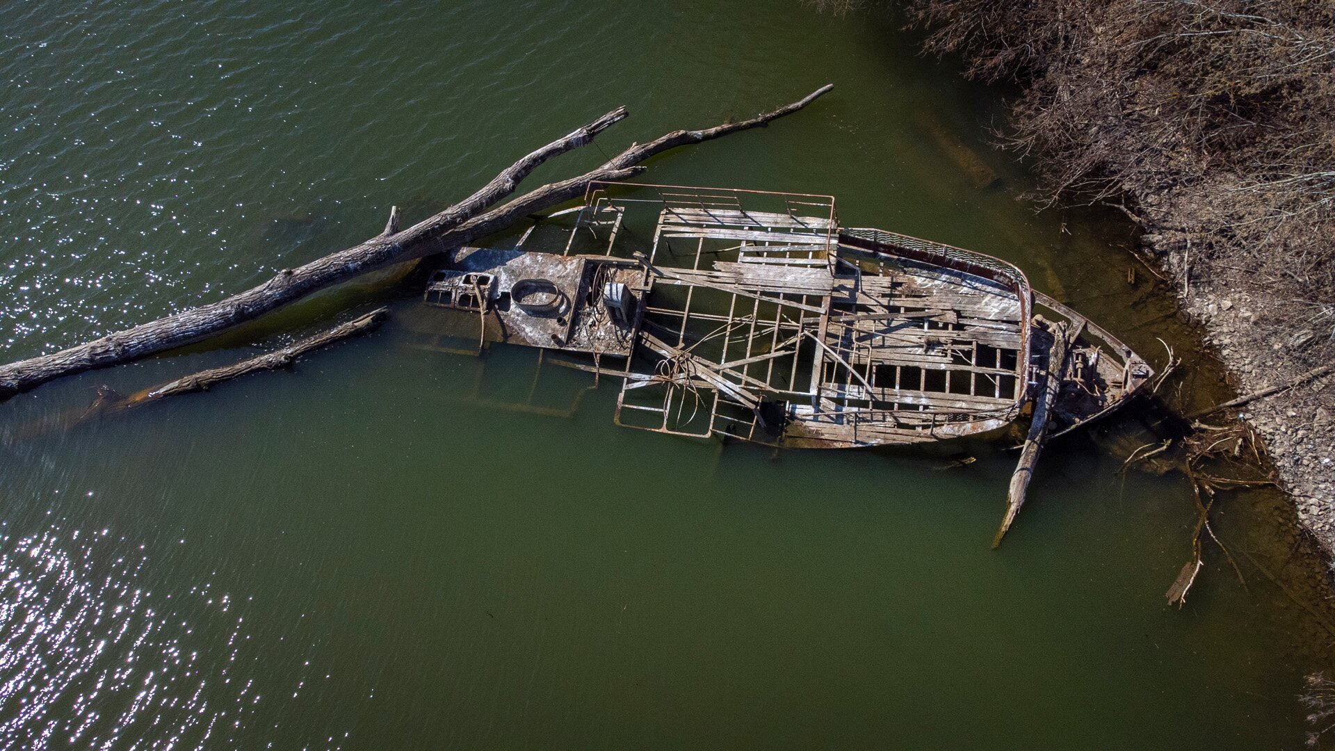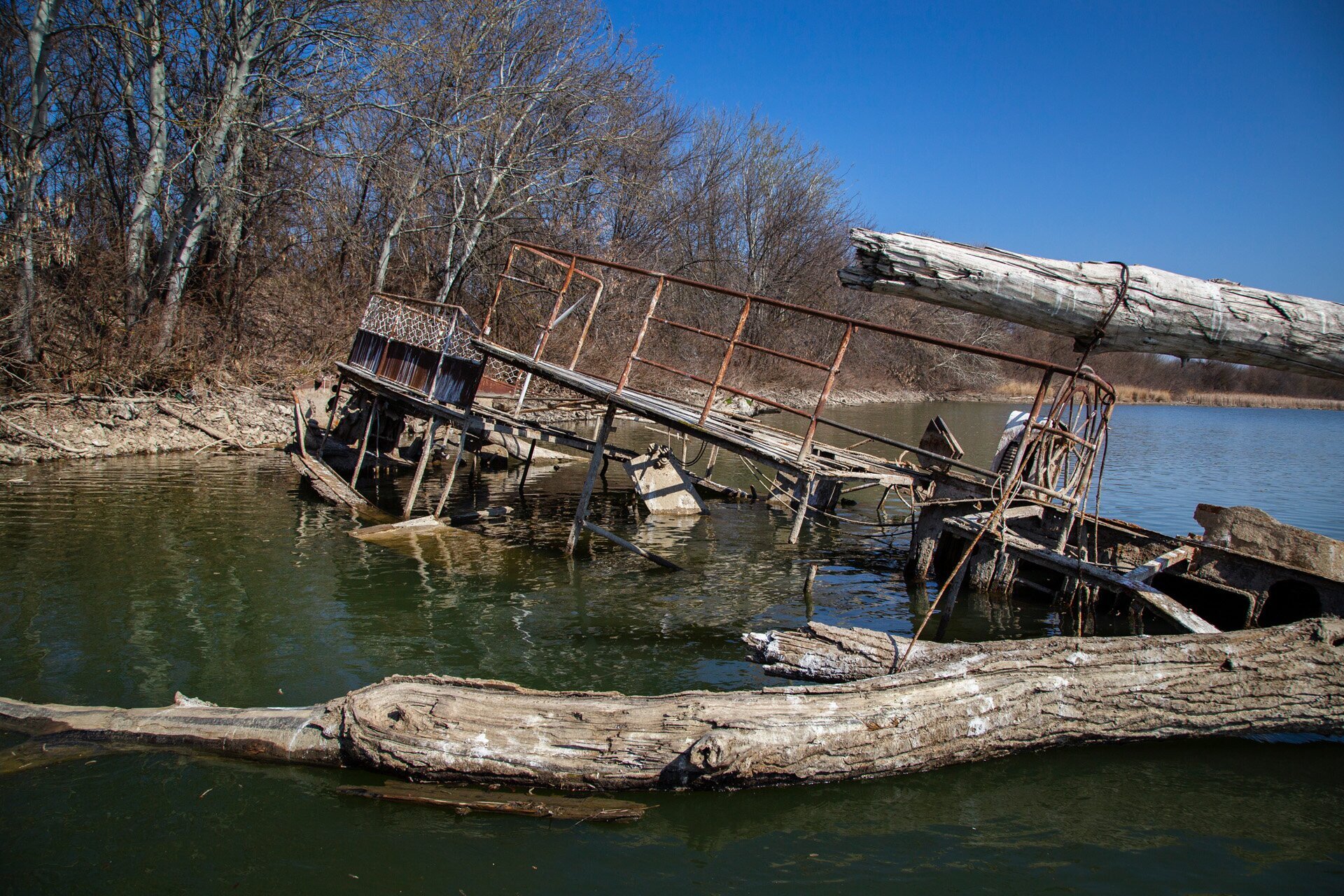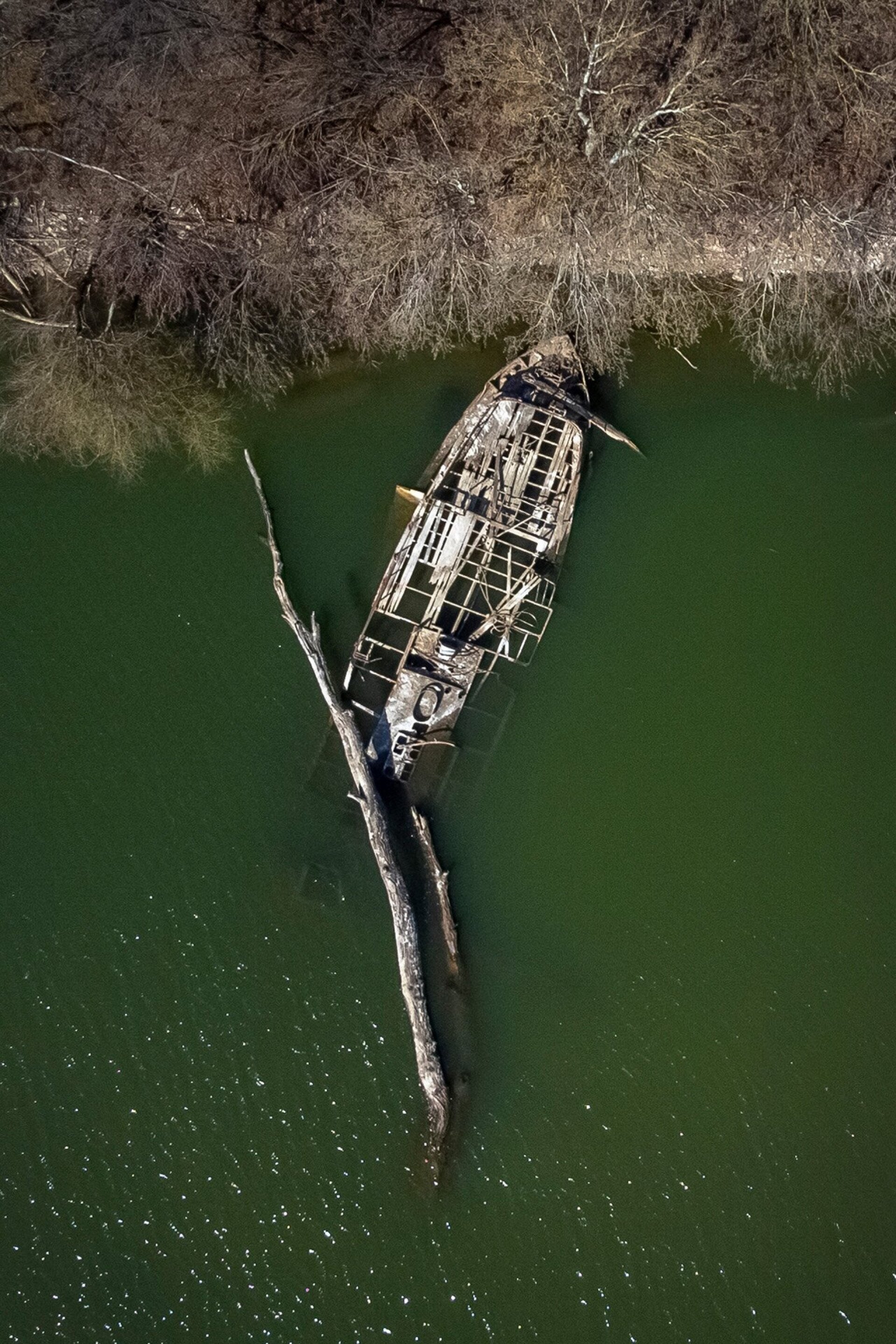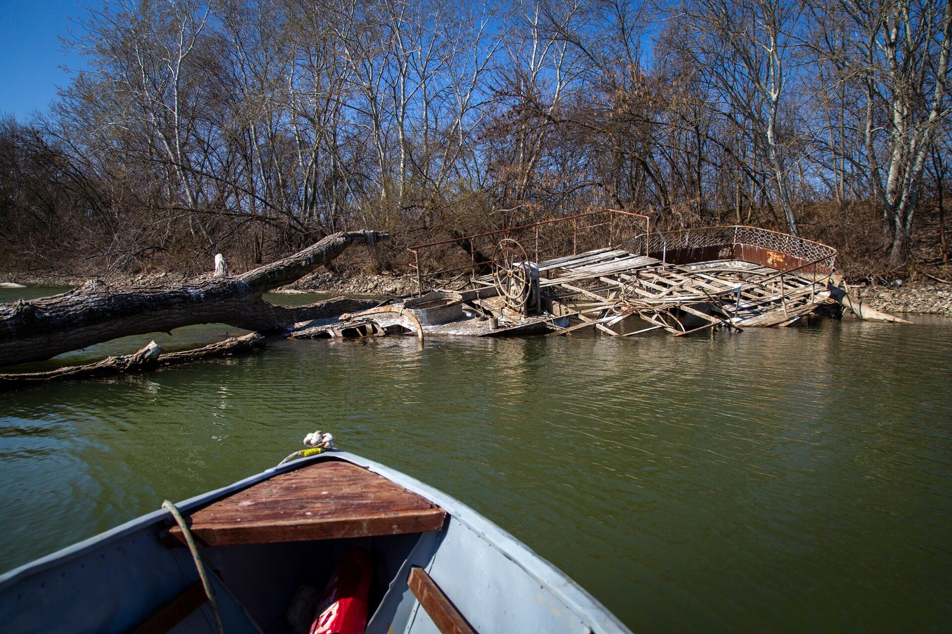 Csónakkal közelítünk a roncshoz