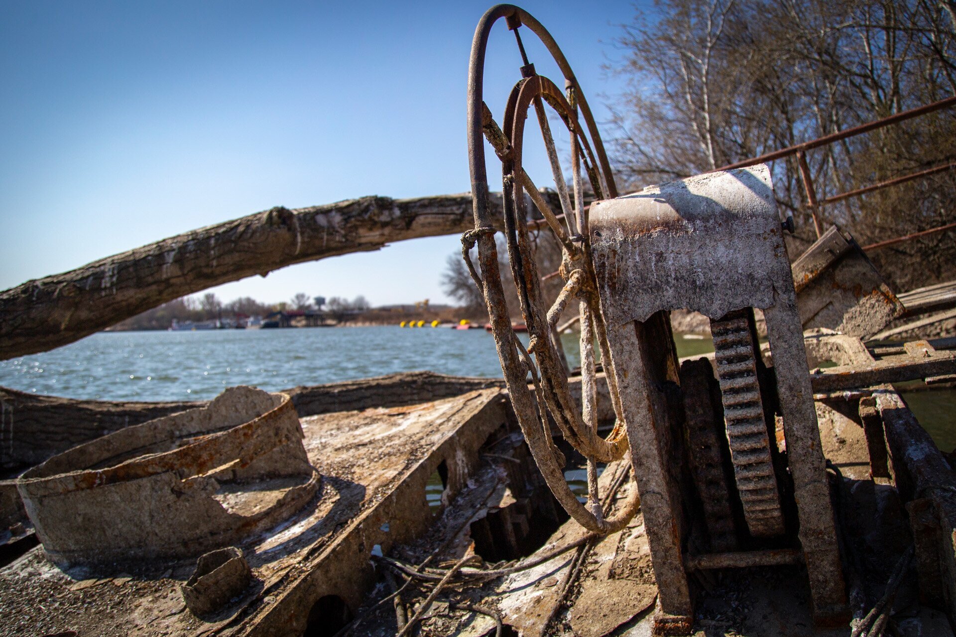A hatalmas kormánykerék még a helyén van