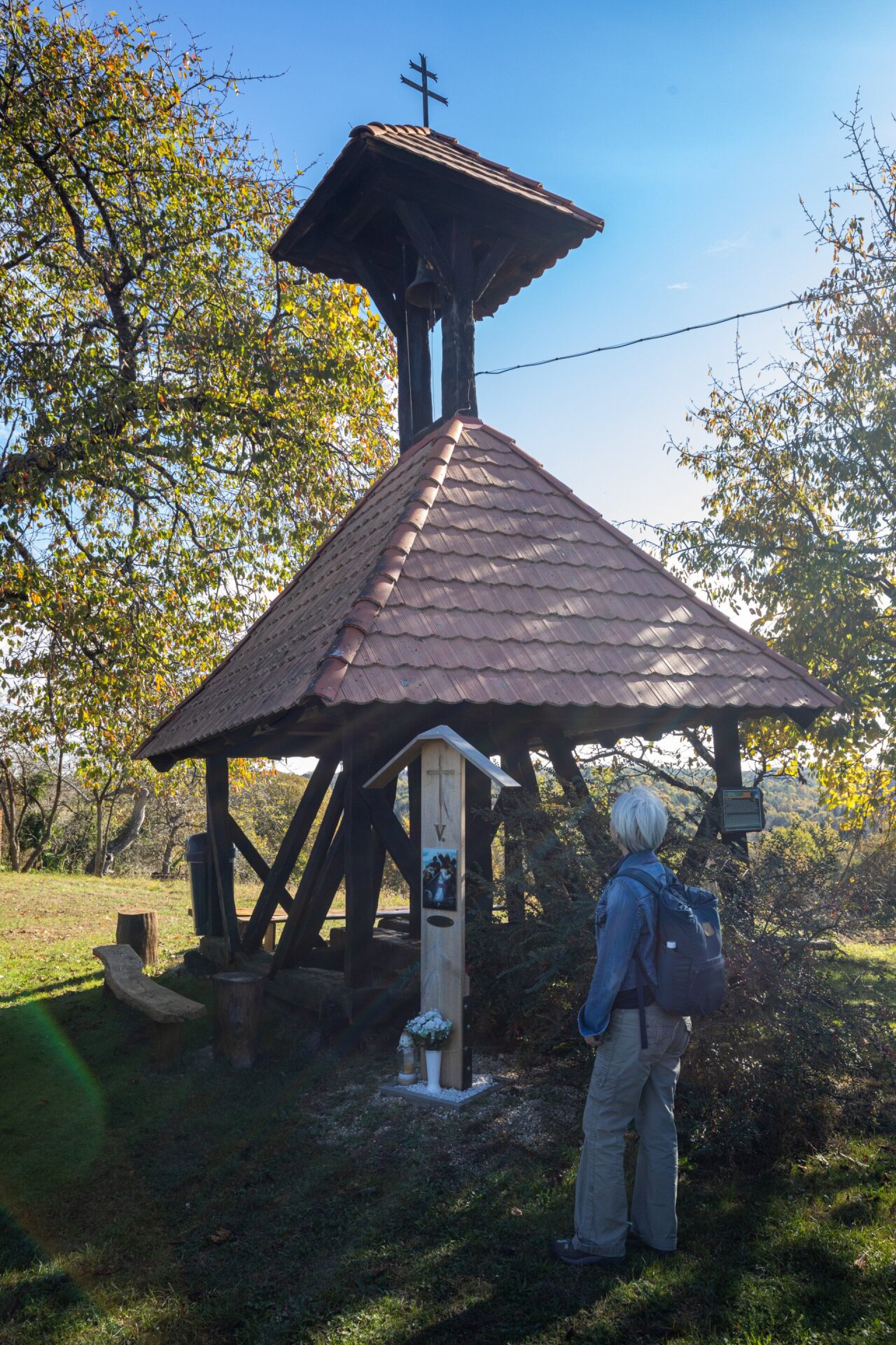 A túra egyik állomása az 1865-ben épült, kalandos történetű ritkaházai szoknyás harangláb