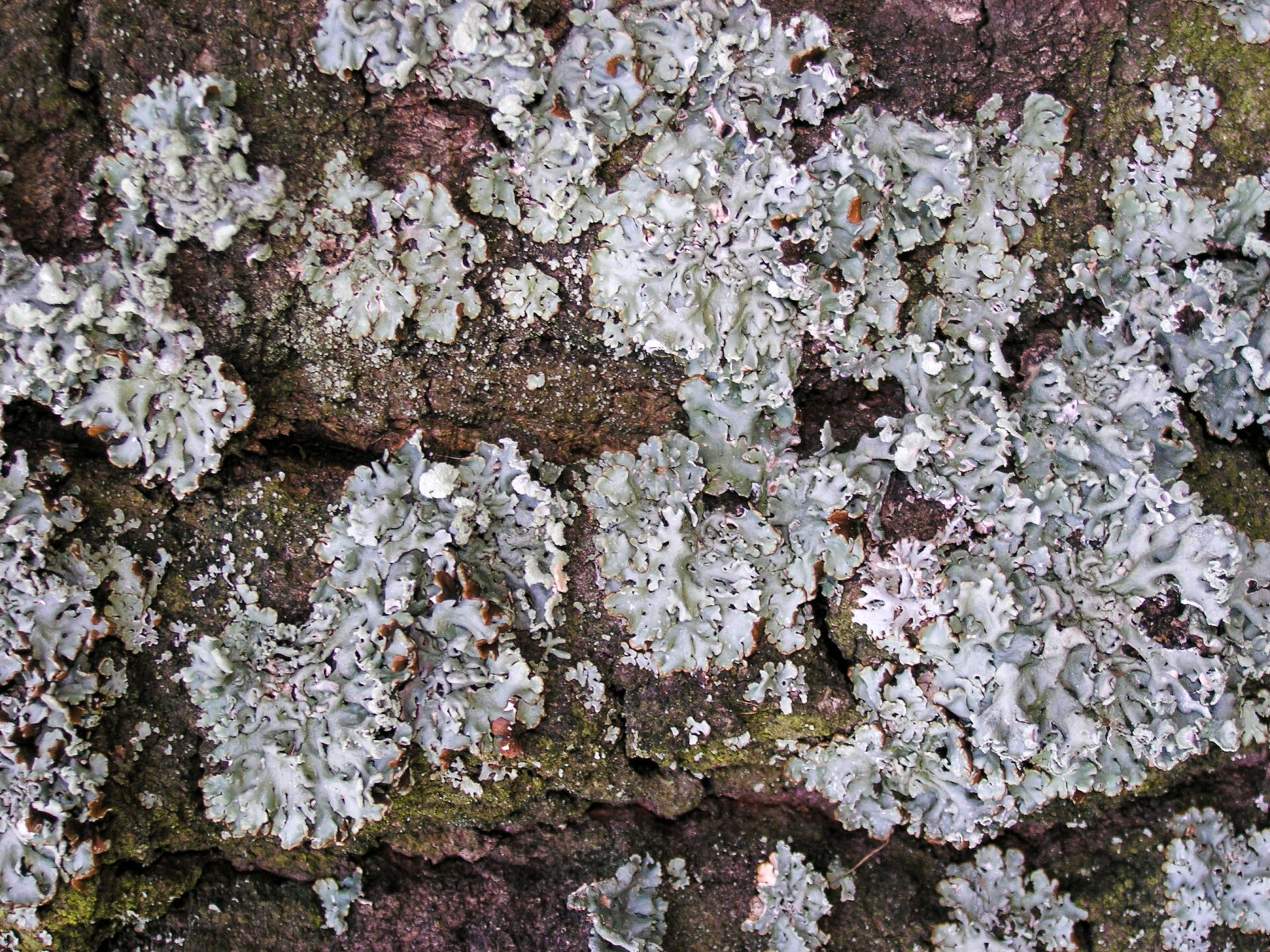 Kékesszürke tányérzuzmó (Parmelia sulcata) mohák ölelésében