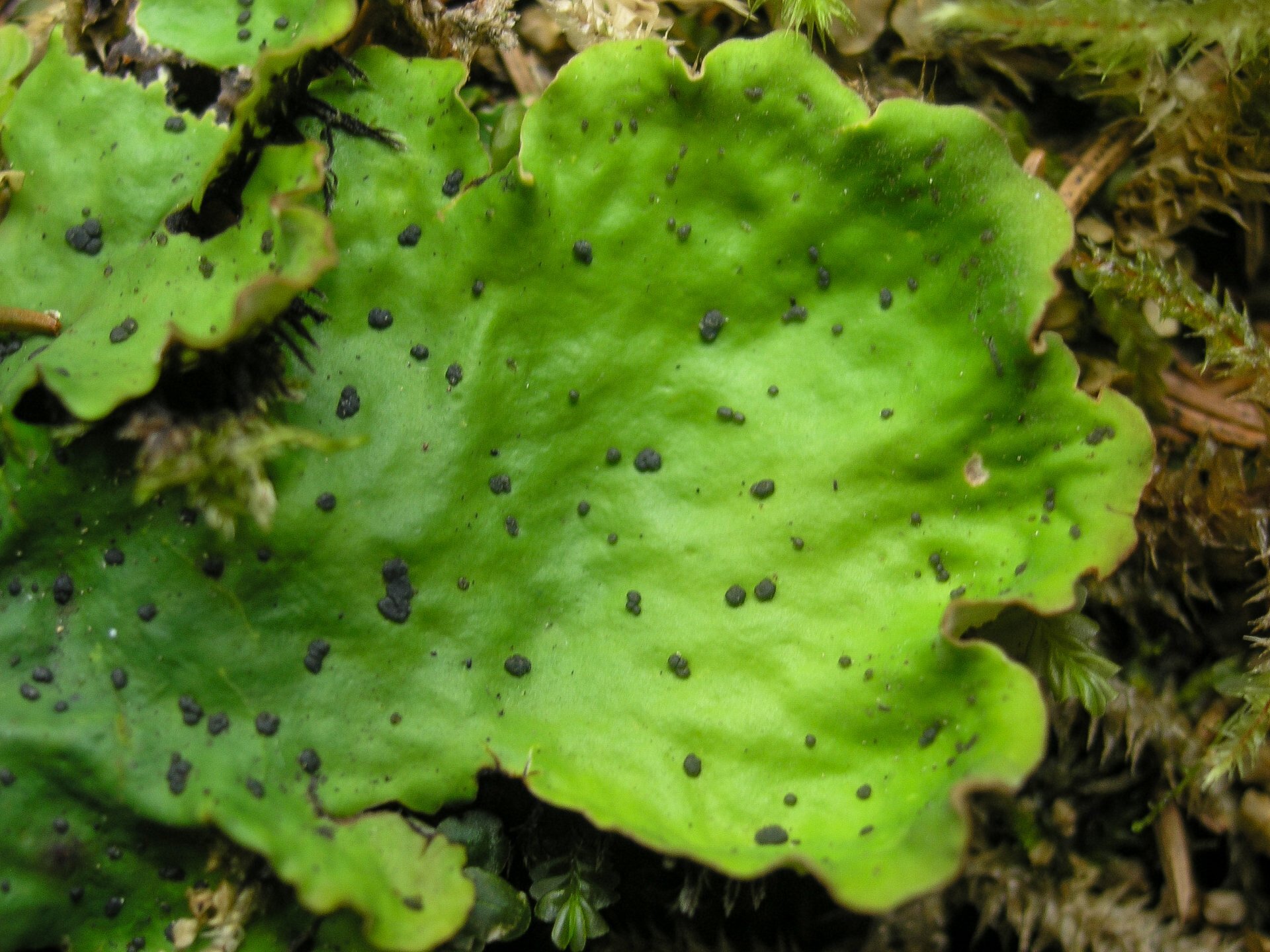 Változó ebzuzmó (Peltigera leucophlebia), védett zuzmófajunk, kétféle algapartnerrel. Zöld színét a zöld algák adják, a sötétebb felszíni szemölcsökben cianobaktériumok élnek.