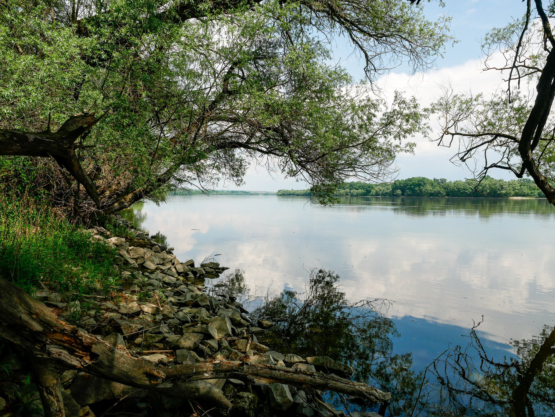 A nyugalmas Hárosi-öböl, a túlpart már a Háros-sziget