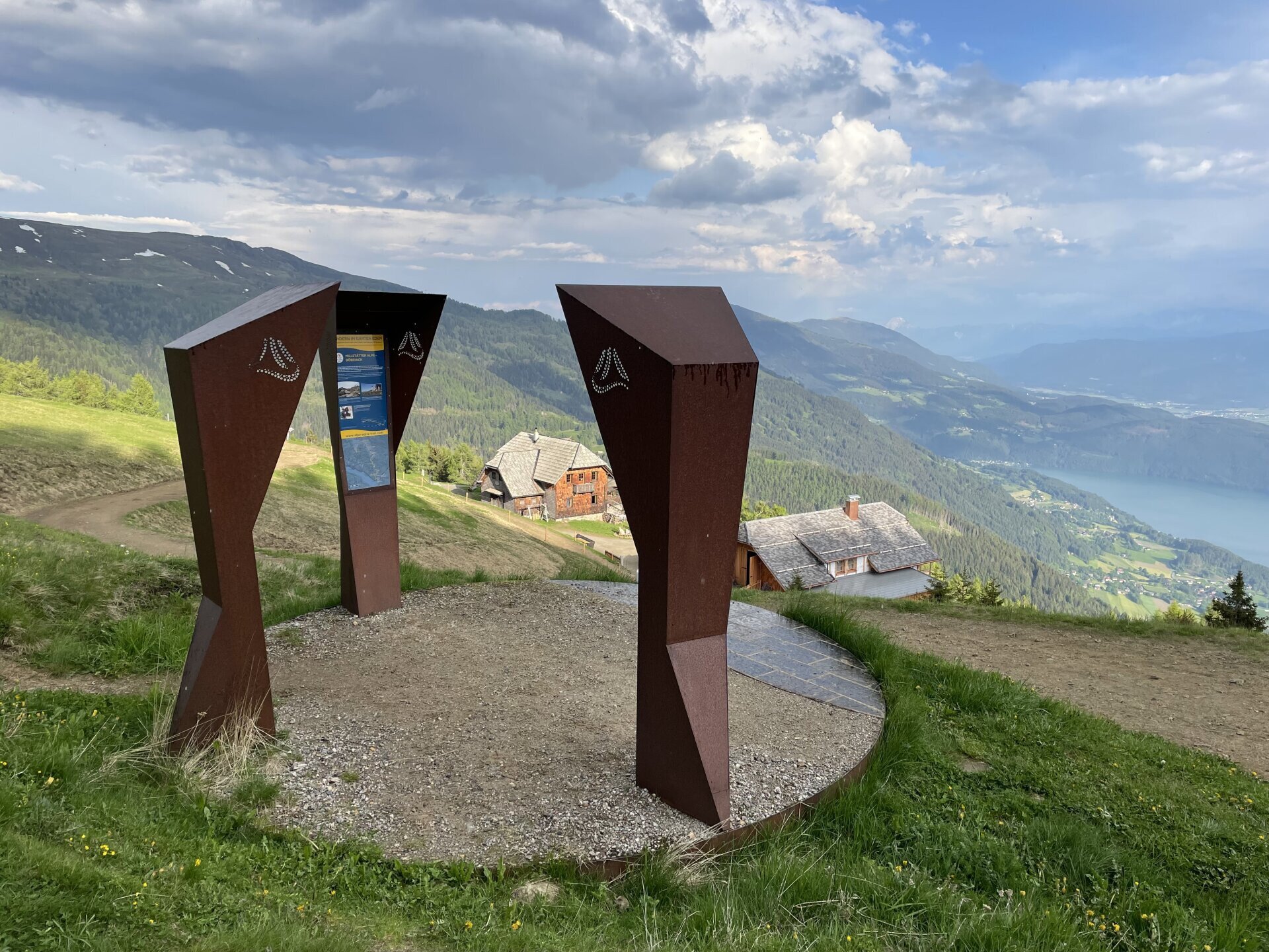 Az Alpok-Adria túraútvonal jellegzetes, három oszlopból álló információs pontjai. Minden szakaszon találkozhatunk velük és az adott útvonalról és tájegységről kaphatunk rengeteg hasznos információt
