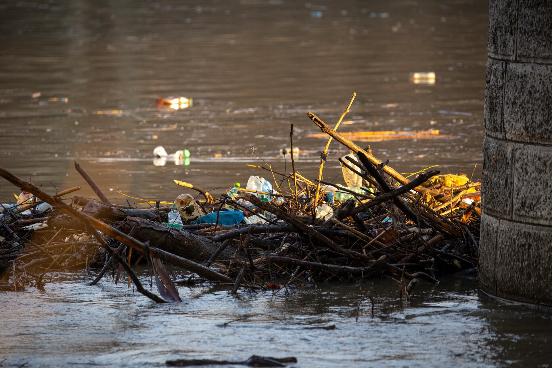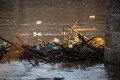 Hordalékfa és műanyag szemét a 33-as főút hídjának pillérjein felakadva