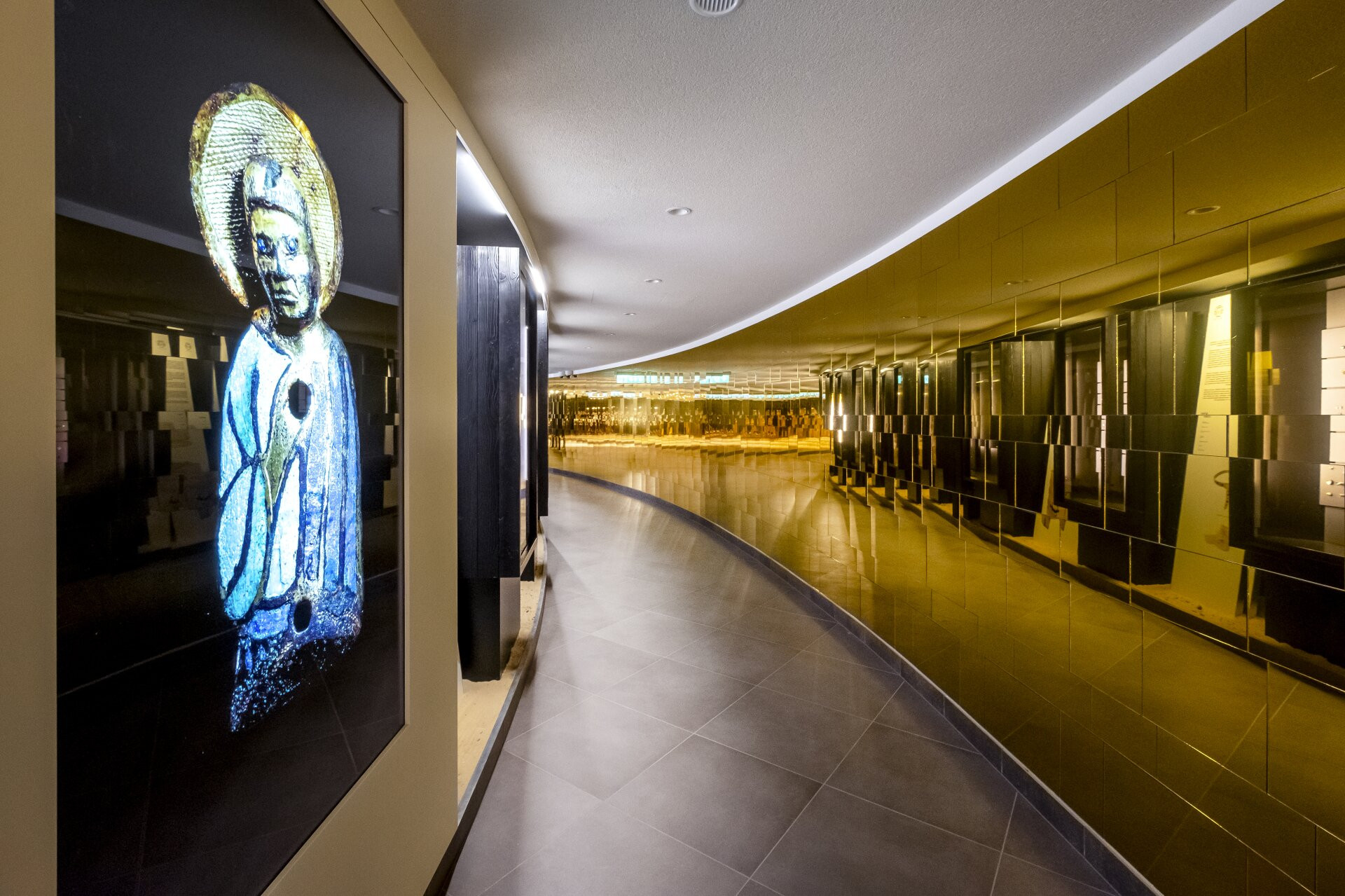 A kiállításnak helyet adó szimbolikus „aranyfolyosó"