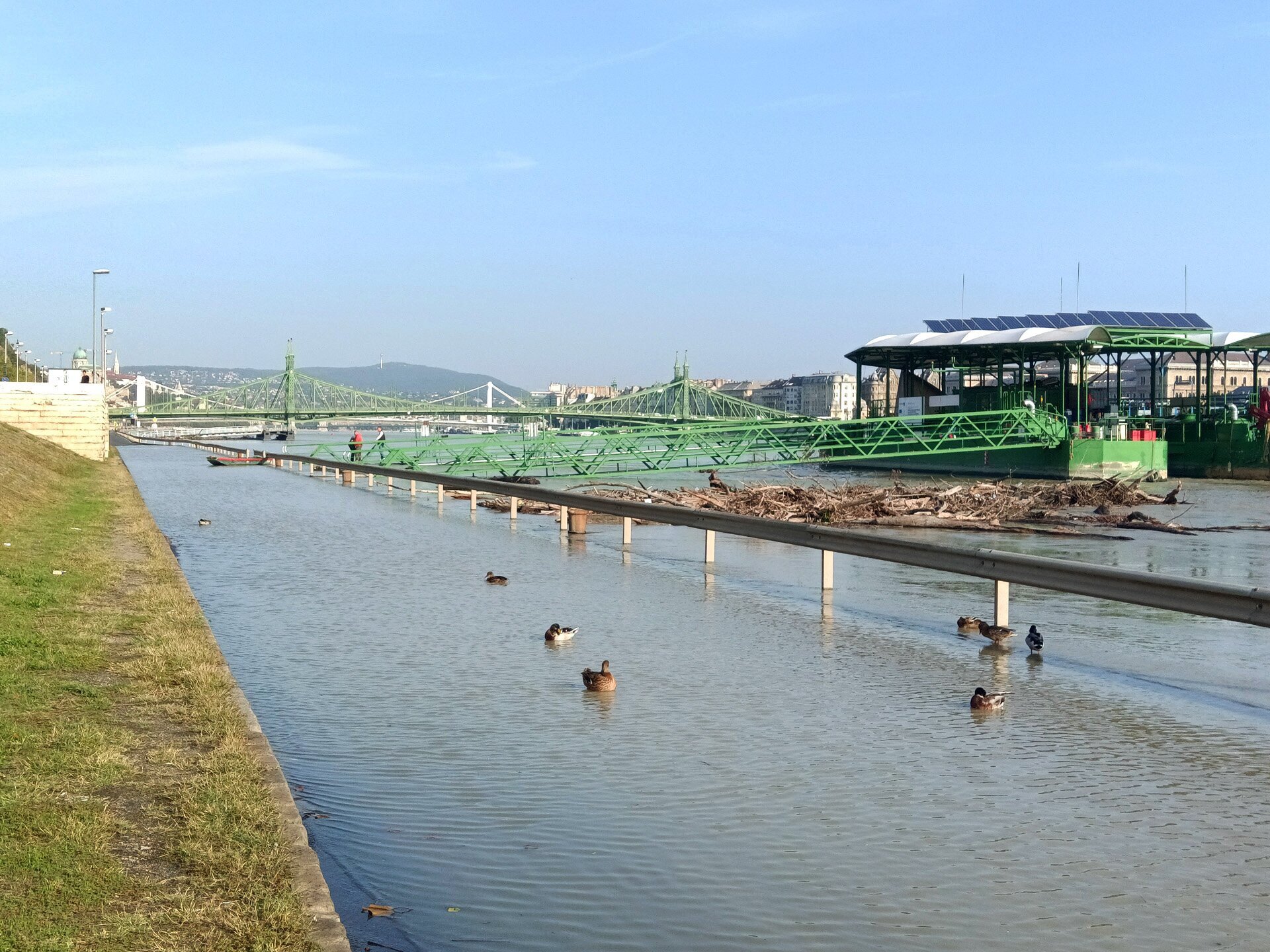 A budai alsó rakpart és a folyó találkozása