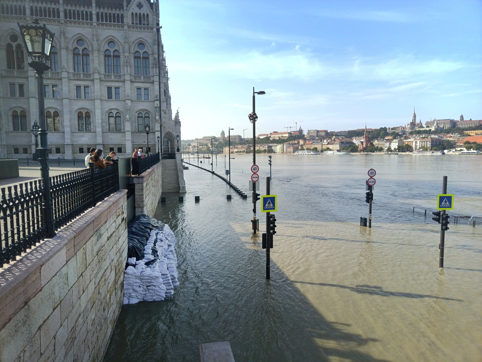 Homokzsákokkal védik a rakpartot a Margit híd budai hídfőjénél