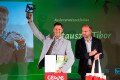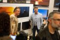 Litauszki Tibor (jobbra) és Potyó Imre (balra) fotózkodik a kiállított képekkel