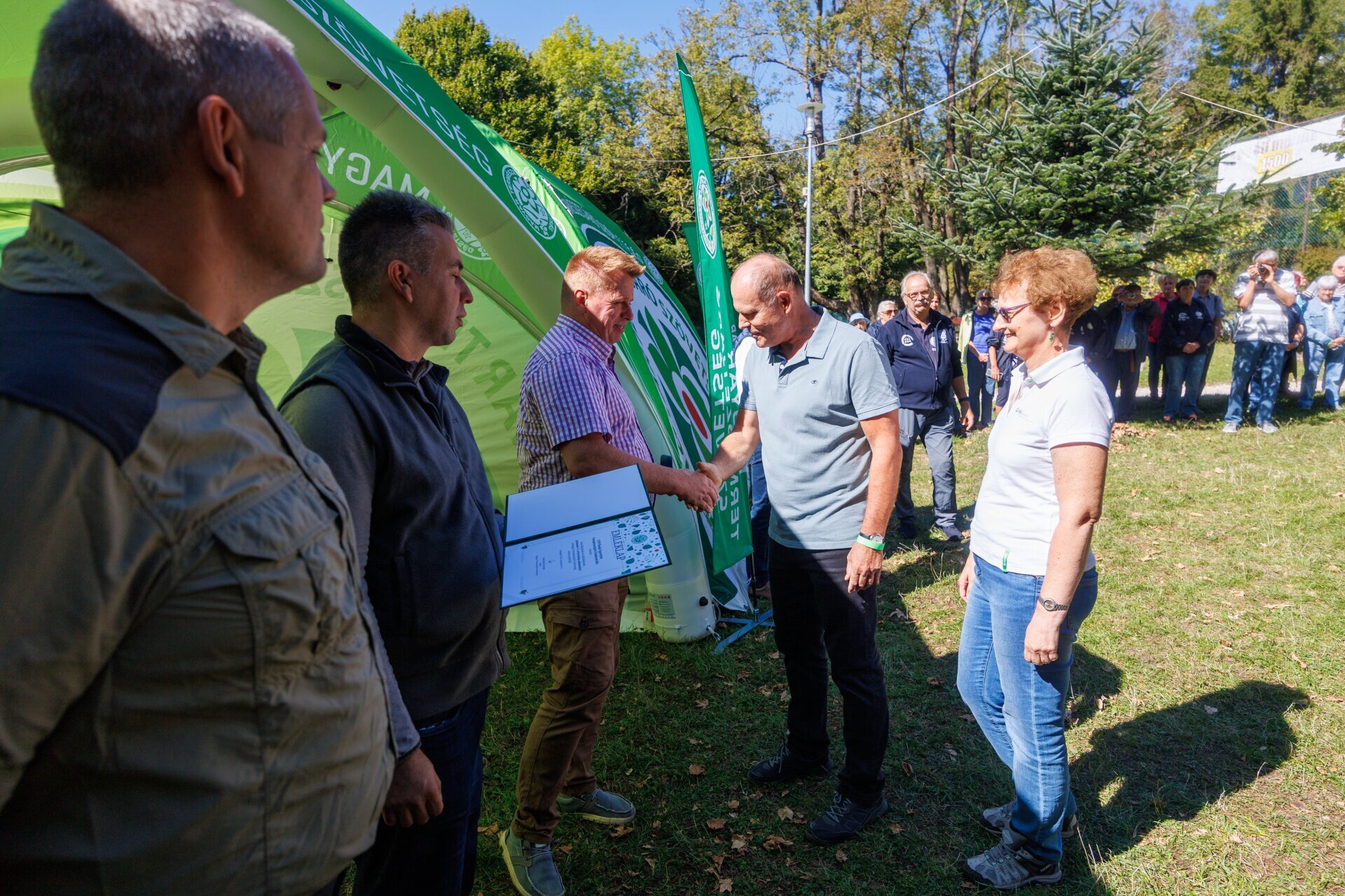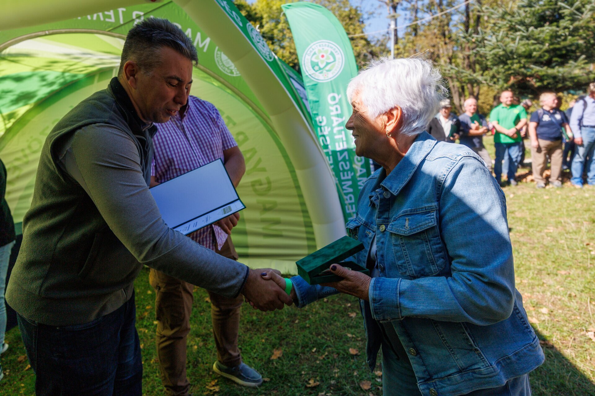 Az Ajkai Kórház Sportegyesület nevében Mag Éva veszi át a Jubileumi Emlékplakettet