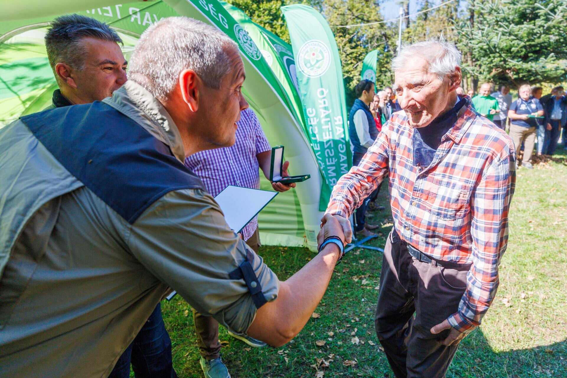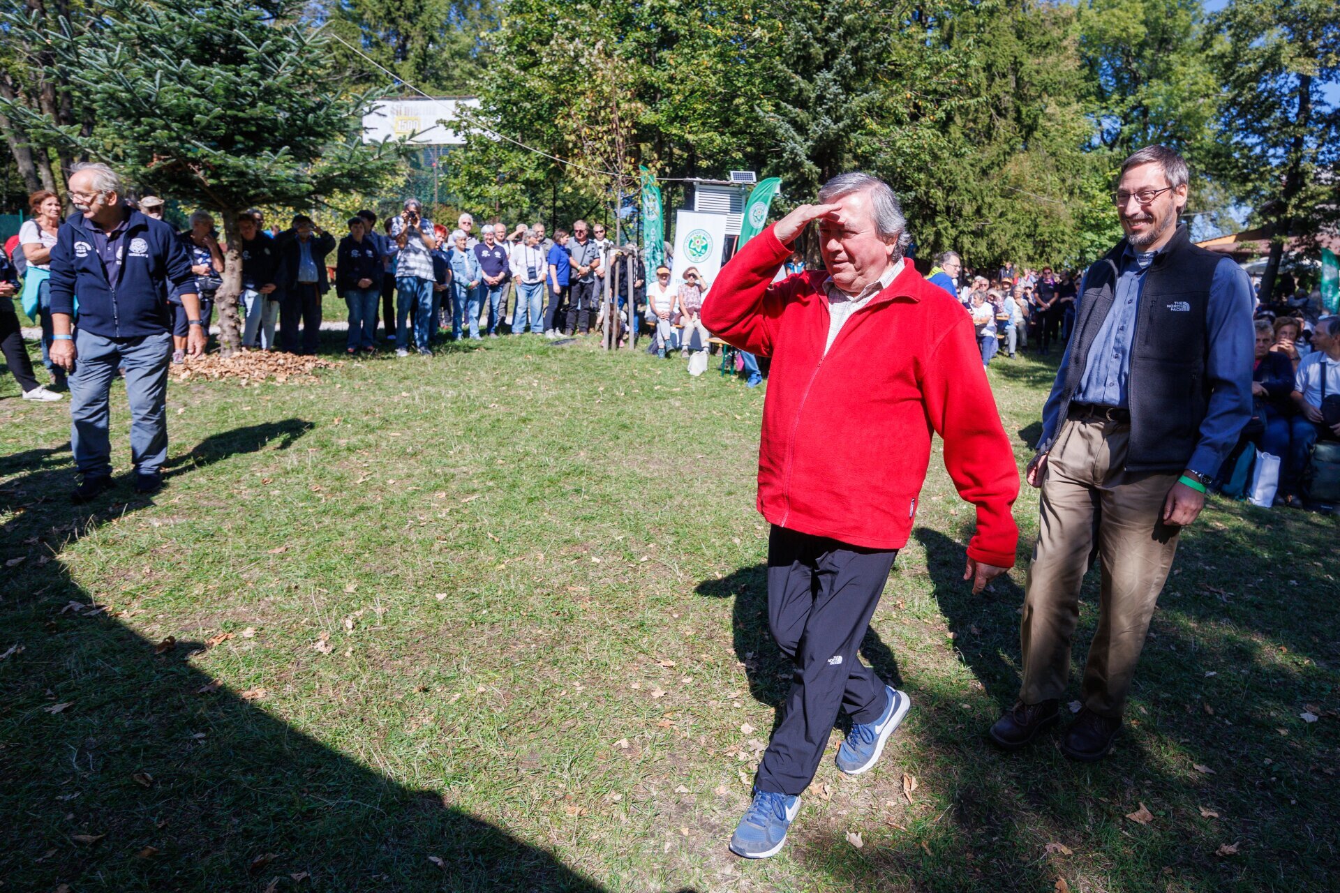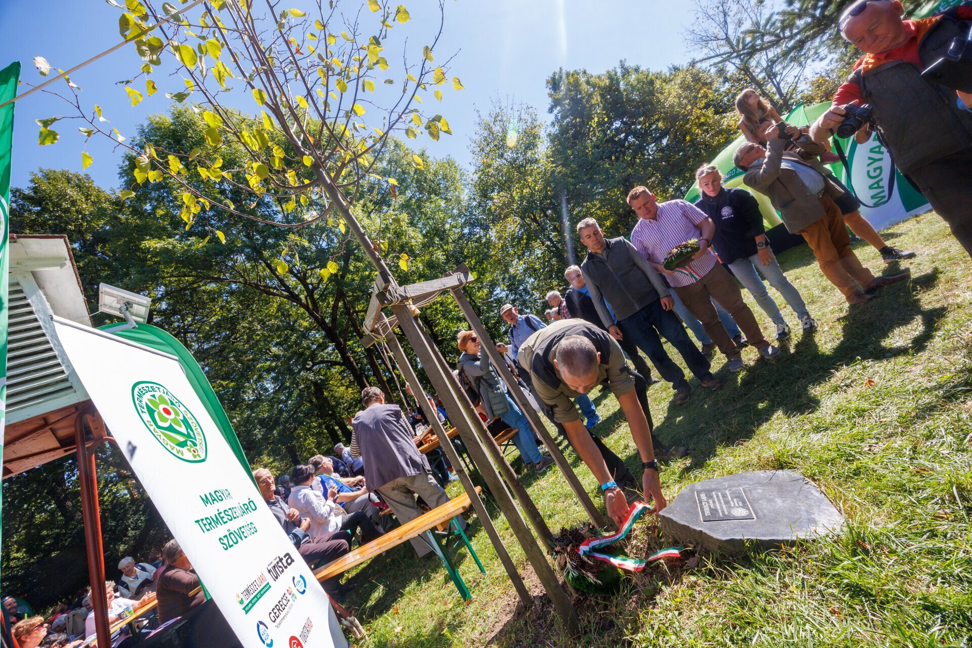 Koszorúzás Thuróczy Lajos, az MTSZ egykori tiszteletbeli elnökének emlékfájánál