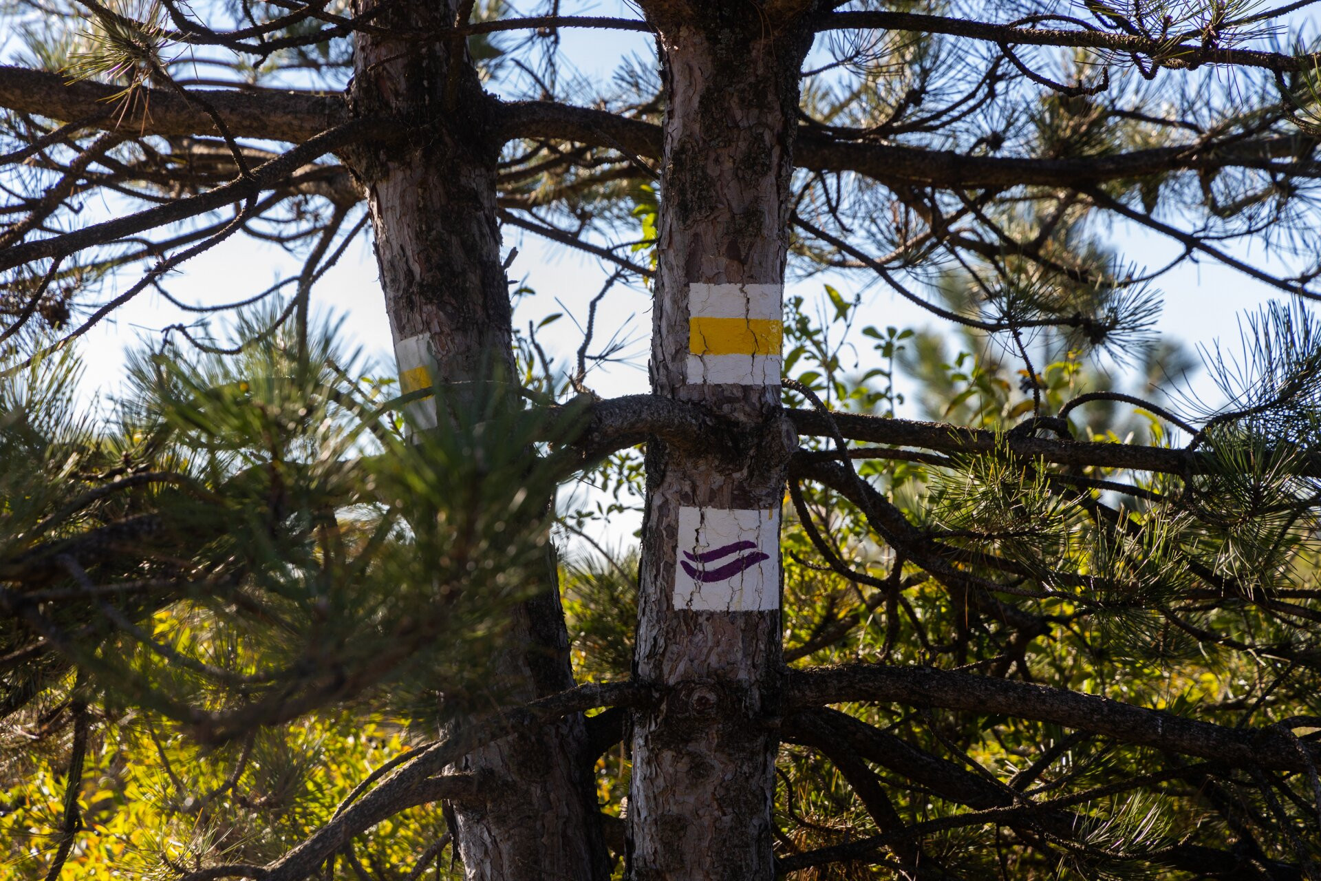 A túra egyik legszebb része, fenyők panorámával – és nem, nem a Nagy-Szénáson, hanem még mindig Érd M7-es feletti szakaszán járunk. Bár tősgyökeres érdi vagyok, errefelé még sosem sétáltam, ahogy szerintem a helyiek többsége sem, pedig érdemes megismerni, mert csodahangulatos. Hó alatt egyenesen varázslatos lehet.